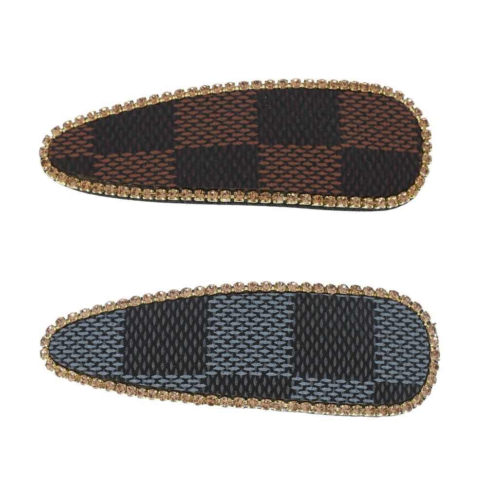 2-PACK ASSORTED FASHIONISTA LUX STYLE CHECKERED PATTERN CRYSTAL RHINESTONE TRIM SNAP HAIR CLIP SET