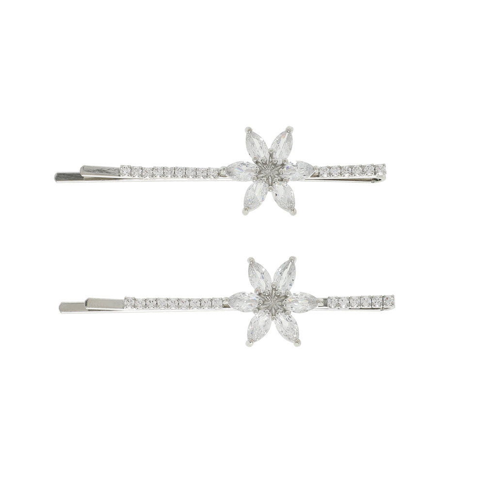 2-PACK MATCHING CRYSTAL GEMSTONE MARQUISE CUT FLORAL BOBBY HAIR PIN SET IN SILVER TONE METAL