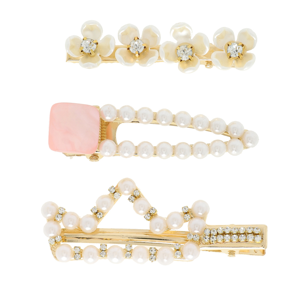 3-pack Assorted Girly Jeweled Pearl Hair Clip Set