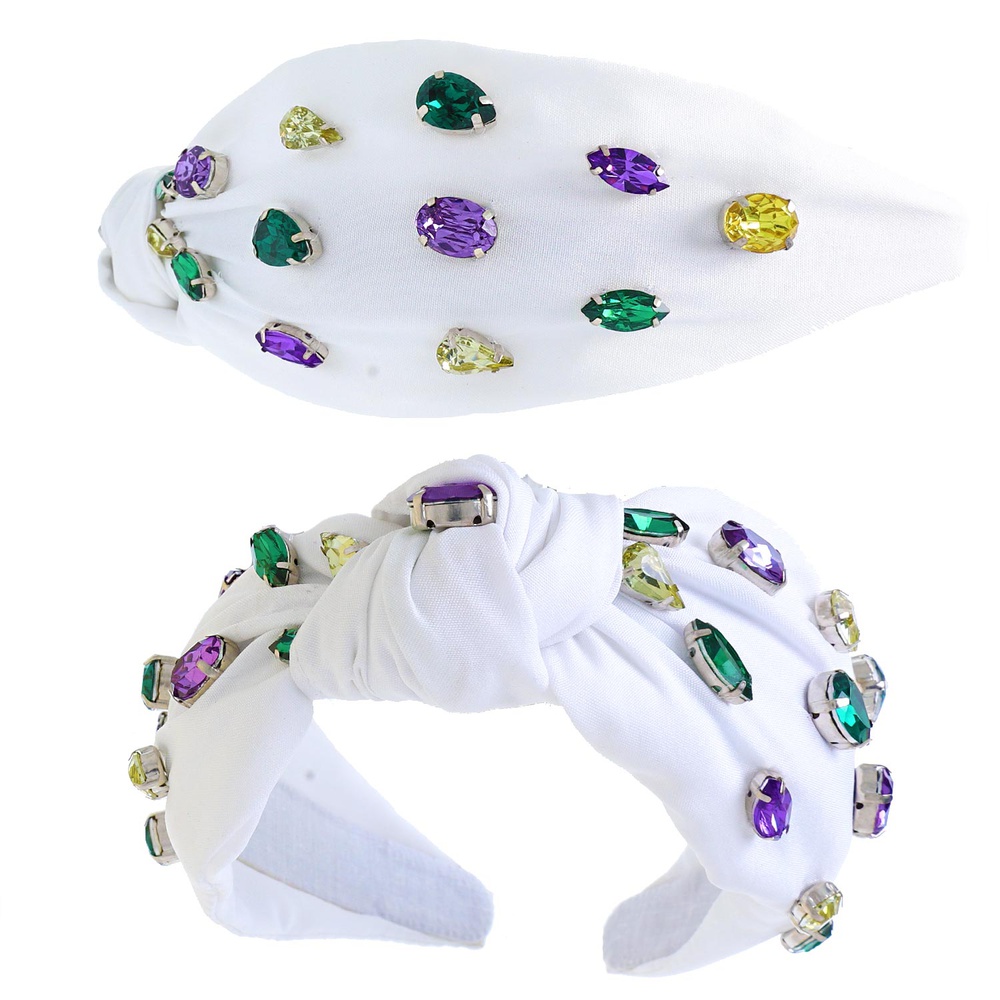 Mardi Gras Tricolor Jeweled Gemstone Knotted Handmade Headband