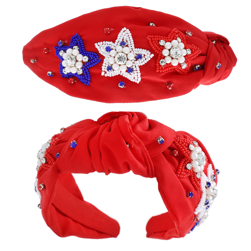 Jeweled And Beaded Usa Patriotic Star Pattern Knotted Headband