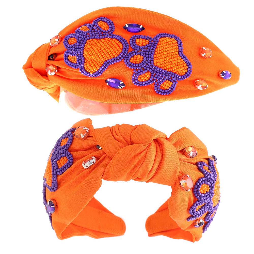 GAME DAY JEWELED BEADED PAW PATTERN KNOTTED HEADBAND