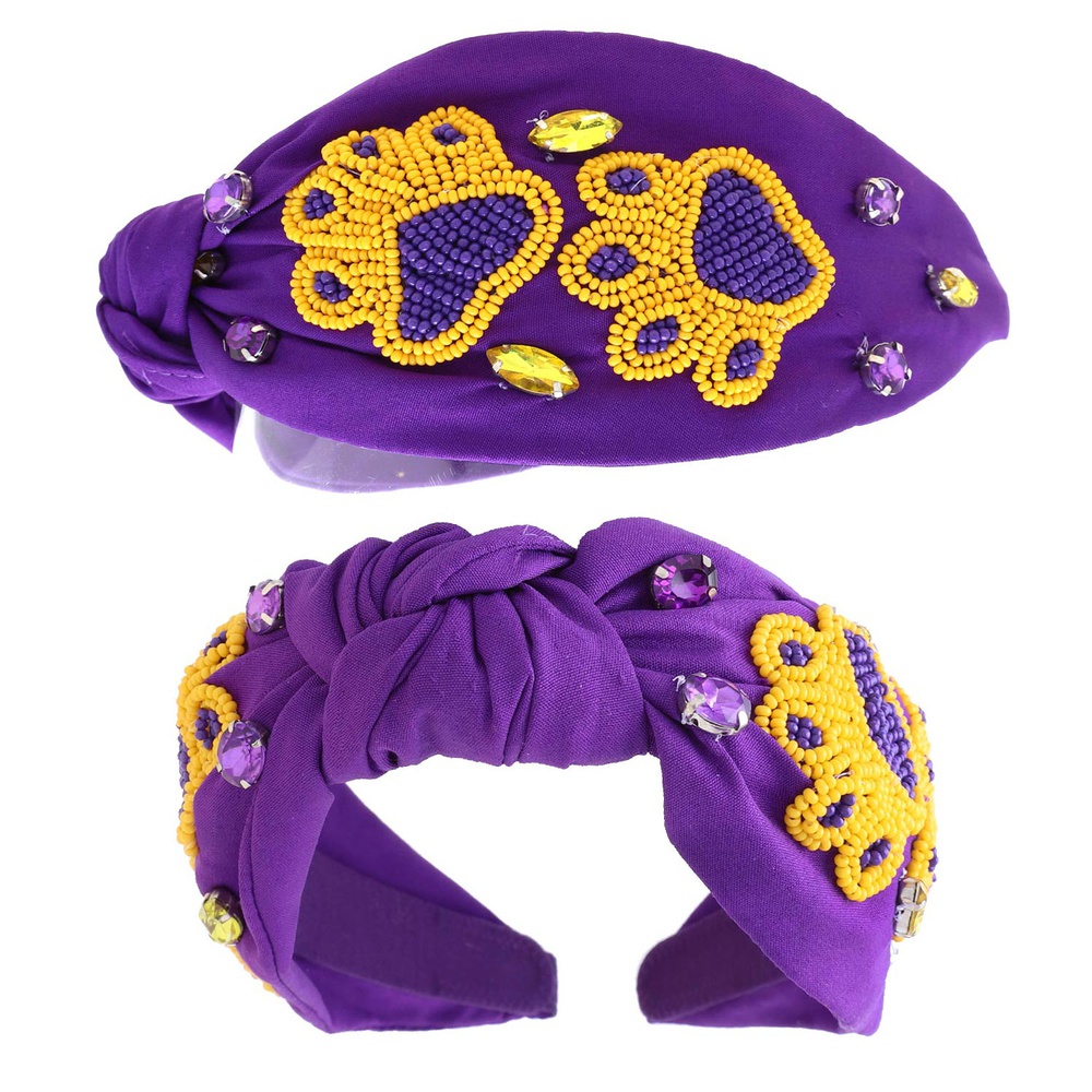 GAME DAY JEWELED BEADED PAW PATTERN KNOTTED HEADBAND