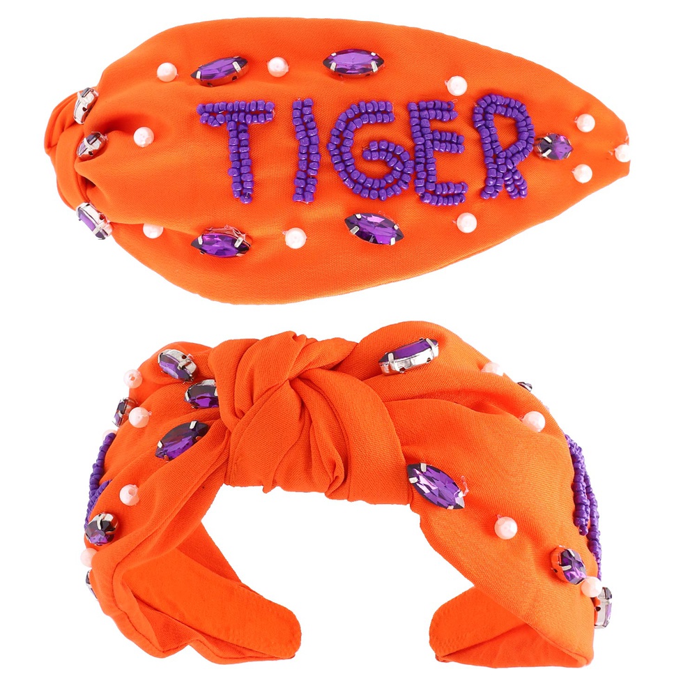 GAME DAY JEWELED PEARL BEADED TIGER KNOTTED HEADBAND