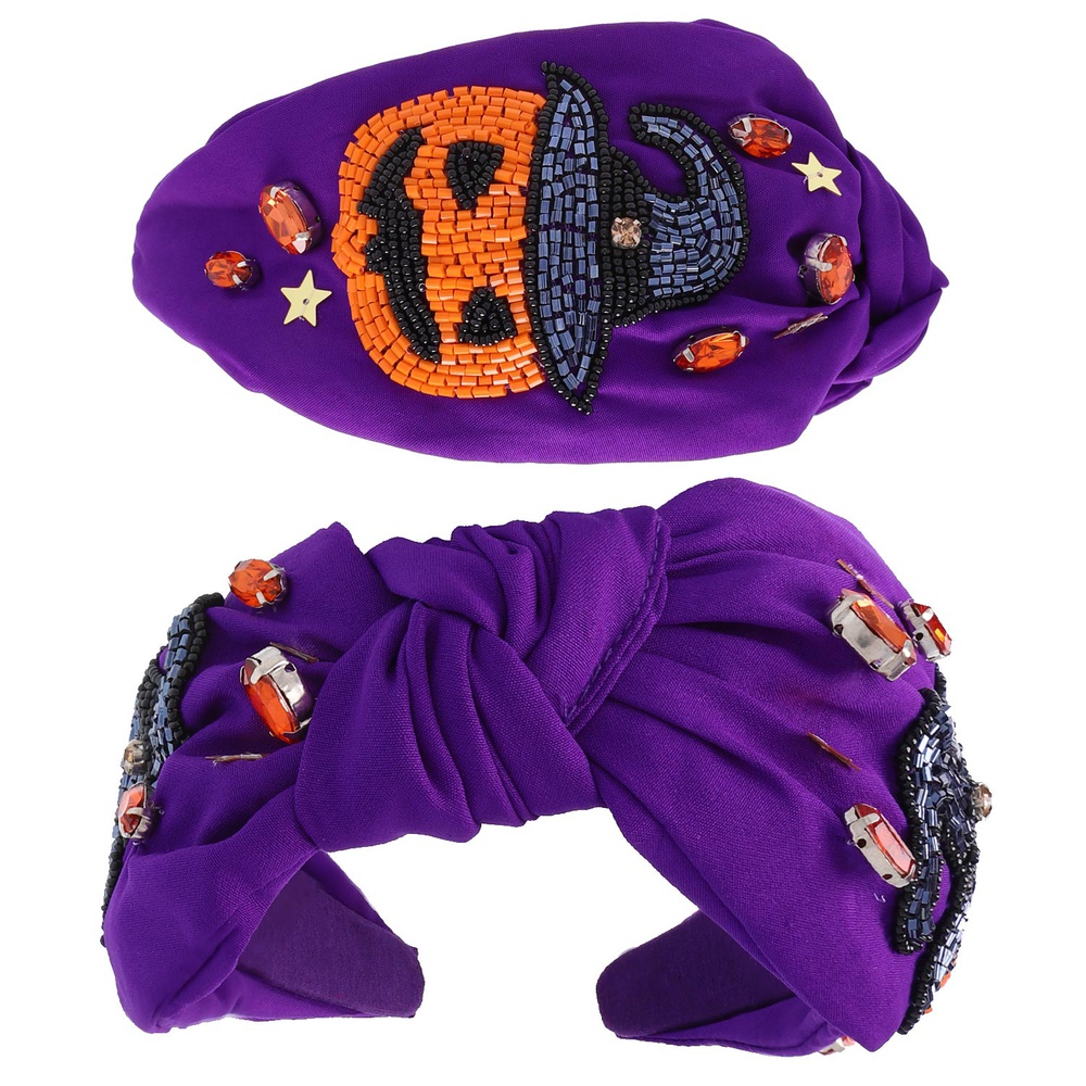 HALLOWEEN CRYSTAL RHINESTONE BEADED JACK O'LANTERN WIZARD BEADED TOP KNOT HANDMADE HEADBAND