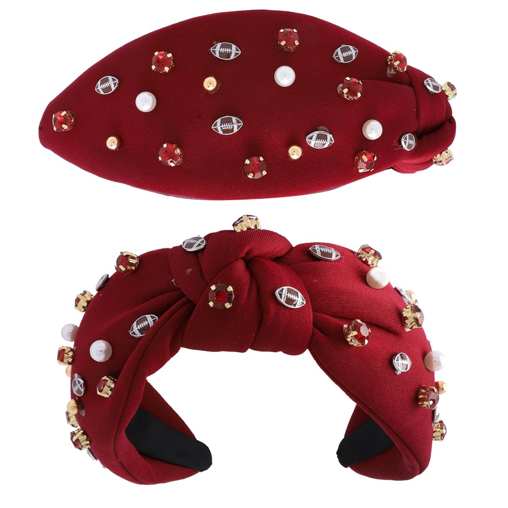 GAME DAY FOOTBALL CRYSTAL RHINESTONE PEARL JEWELED TOP KNOT HANDMADE HEADBAND