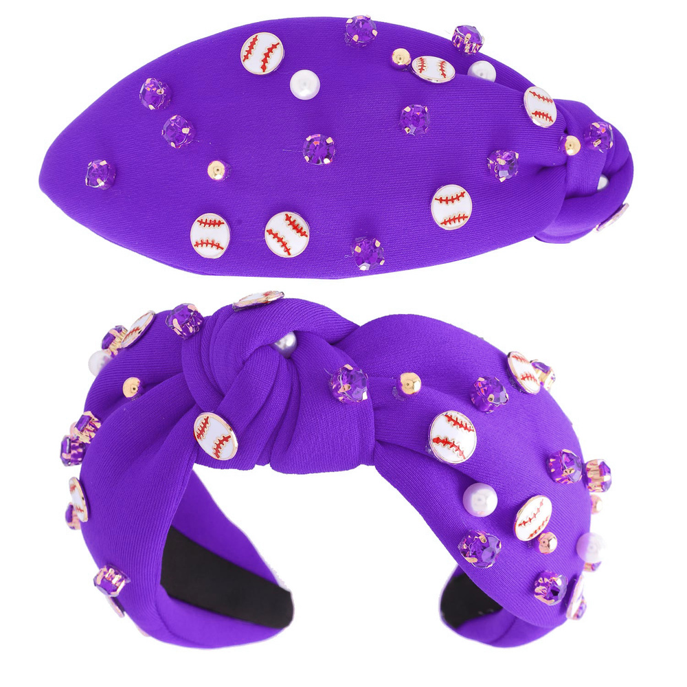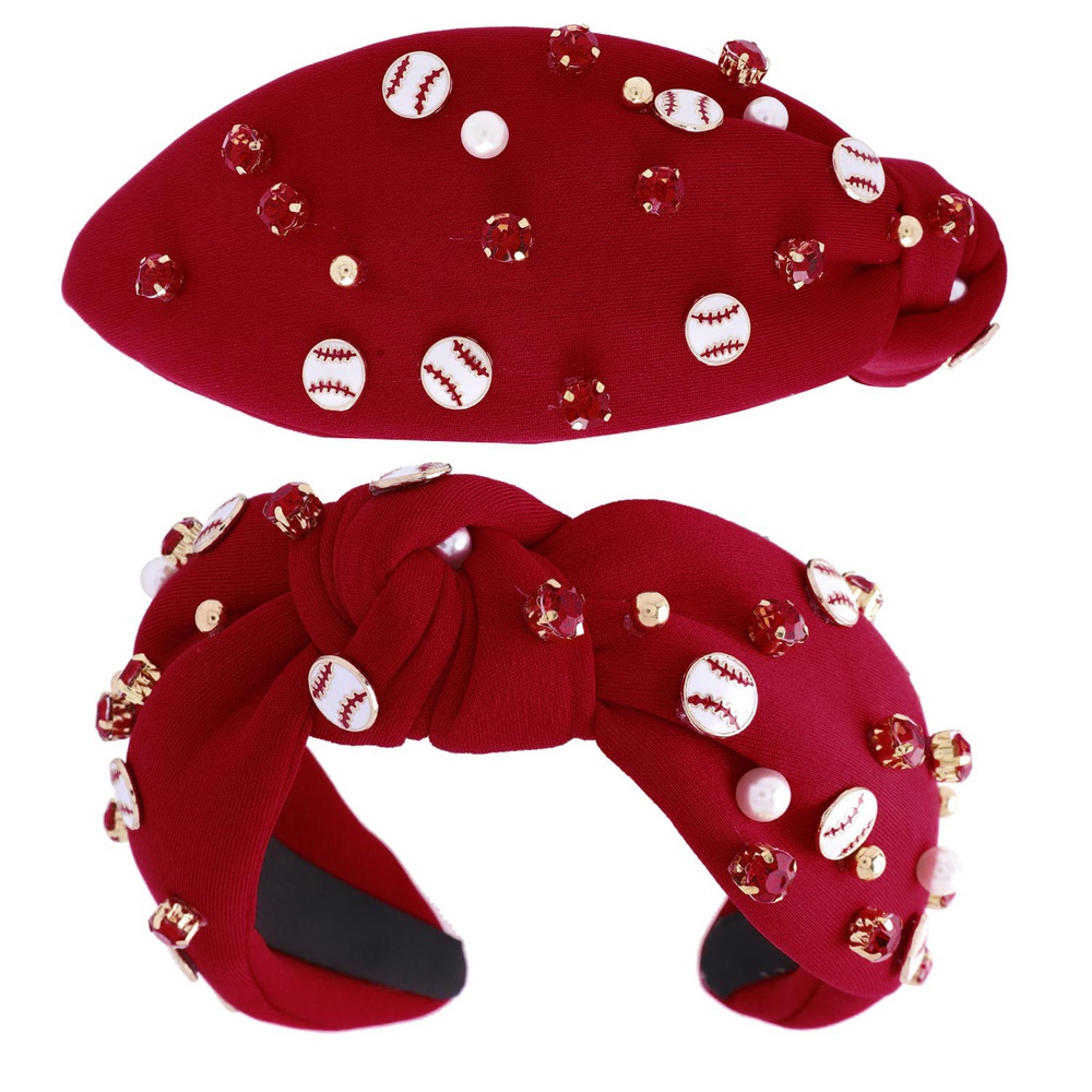 GAME DAY BASEBALL CRYSTAL RHINESTONE PEARL JEWELED TOP KNOT HANDMADE HEADBAND