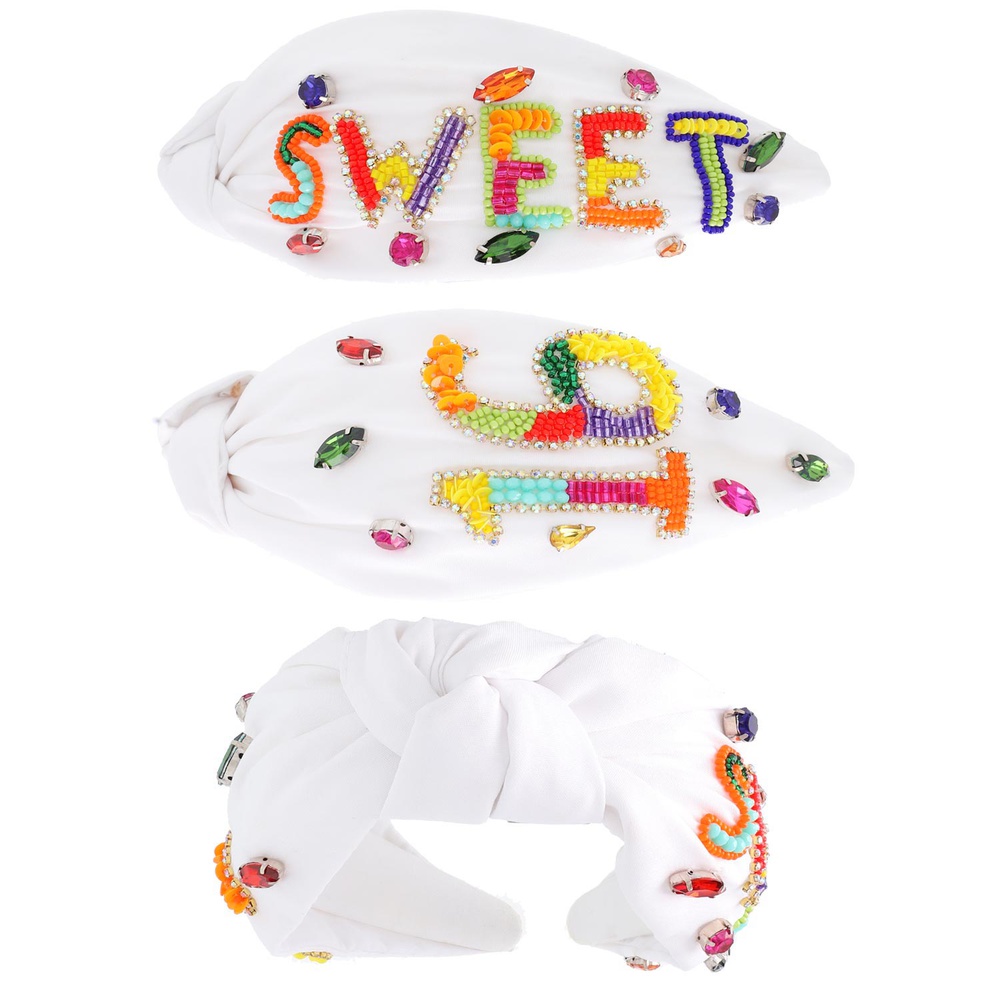 MULTICOLOR "SWEET 16" JEWELED BEADED KNOTTED BIRTHDAY HEADBAND