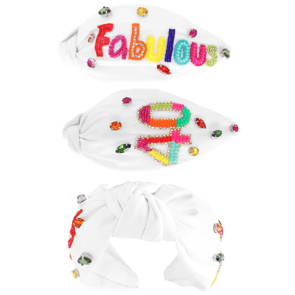 MULTICOLOR "FABULOUS 40" JEWELED BEADED KNOTTED BIRTHDAY HEADBAND
