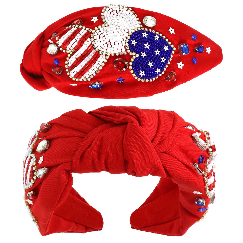 USA PATRIOTIC STAR PATTERN CRYSTAL RHINESTONE PAVE BEADED EMBROIDERY KNOTTED HEADBAND
