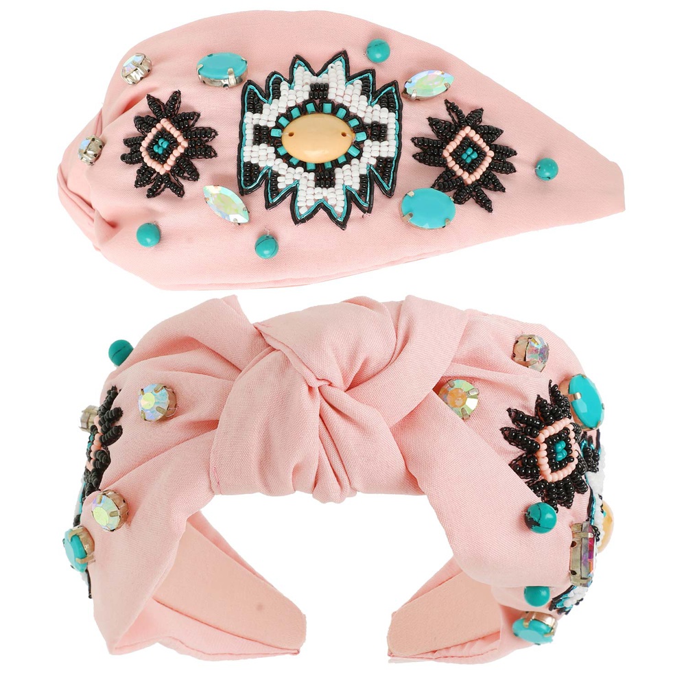 Western Aztec Design Top Knotted Beaded Headband