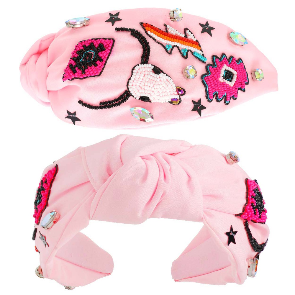 WESTERN LONGHORN STAR SEQUIN CRYSTAL GEMSTONE BEADED AZTEC DESIGN TOP KNOTTED HEADBAND