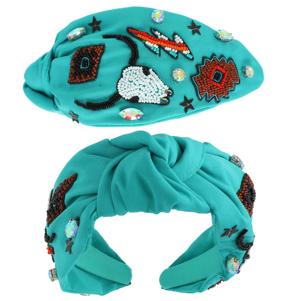 Western Longhorn Top Knotted Beaded Headband