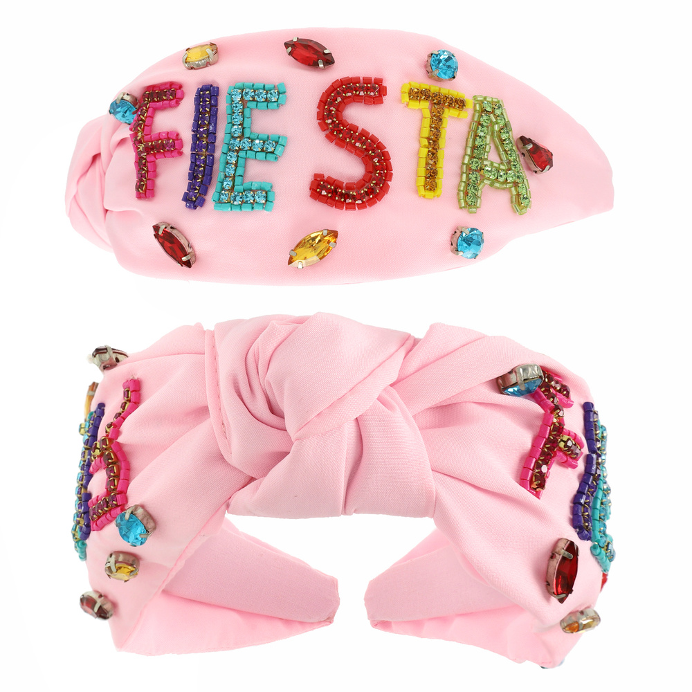 CINCO DE MAYO "FIESTA" BEADED EMBROIDERY CRYSTAL RHINESTONE EMBELLISHED MULTICOLOR LETTER DETAIL TOP KNOTTED HEADBAND