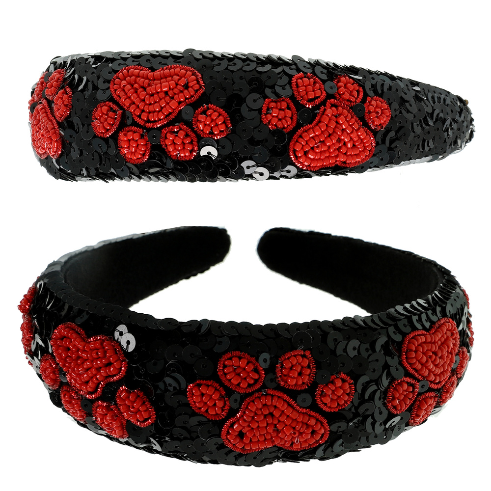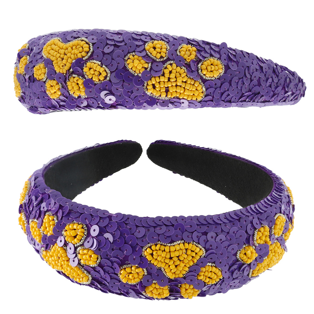 TWO-TONE PAW GAME DAY ATHLETIC SPORTS SEED BEADED SEQUINS EMBELLISHED HEAD BAND
