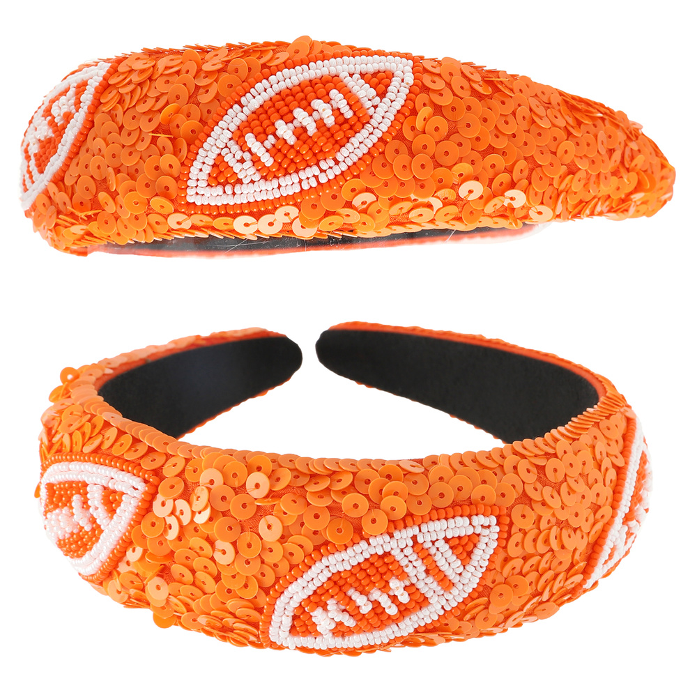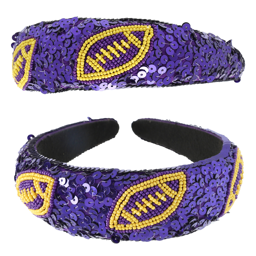 TWO-TONE FOOTBALL SEQUINS SEED BEADED EMBELLISHED HEAD BAND