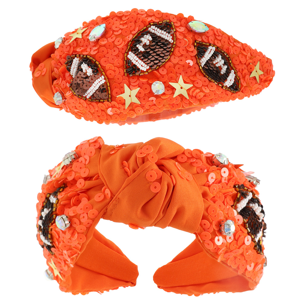 FOOTBALL GEMSTONE SEQUINS BEAD EMBROIDERY TOP KNOTTED HEADBAND