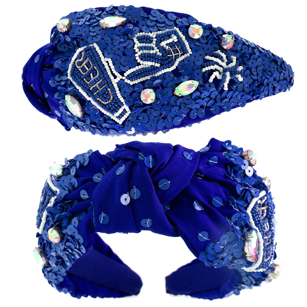 #1 CHEER HAND SEQUINS BEAD GEMSTONE EMBROIDERY TOP KNOTTED HEADBAND
