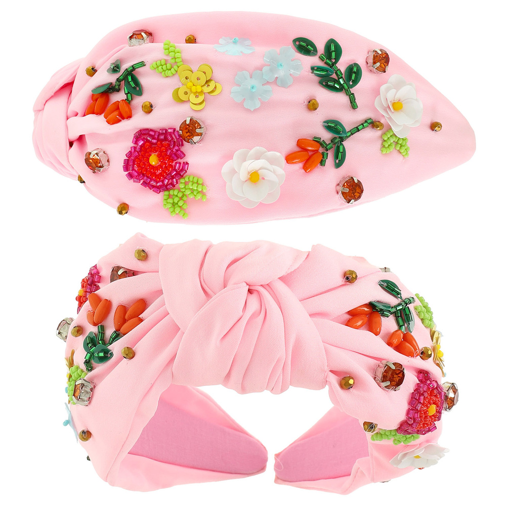 COLORFUL FLOWER THEME SEQUINS CRYSTAL BEAD EMBELLISHED TOP KNOTTED HEADBAND