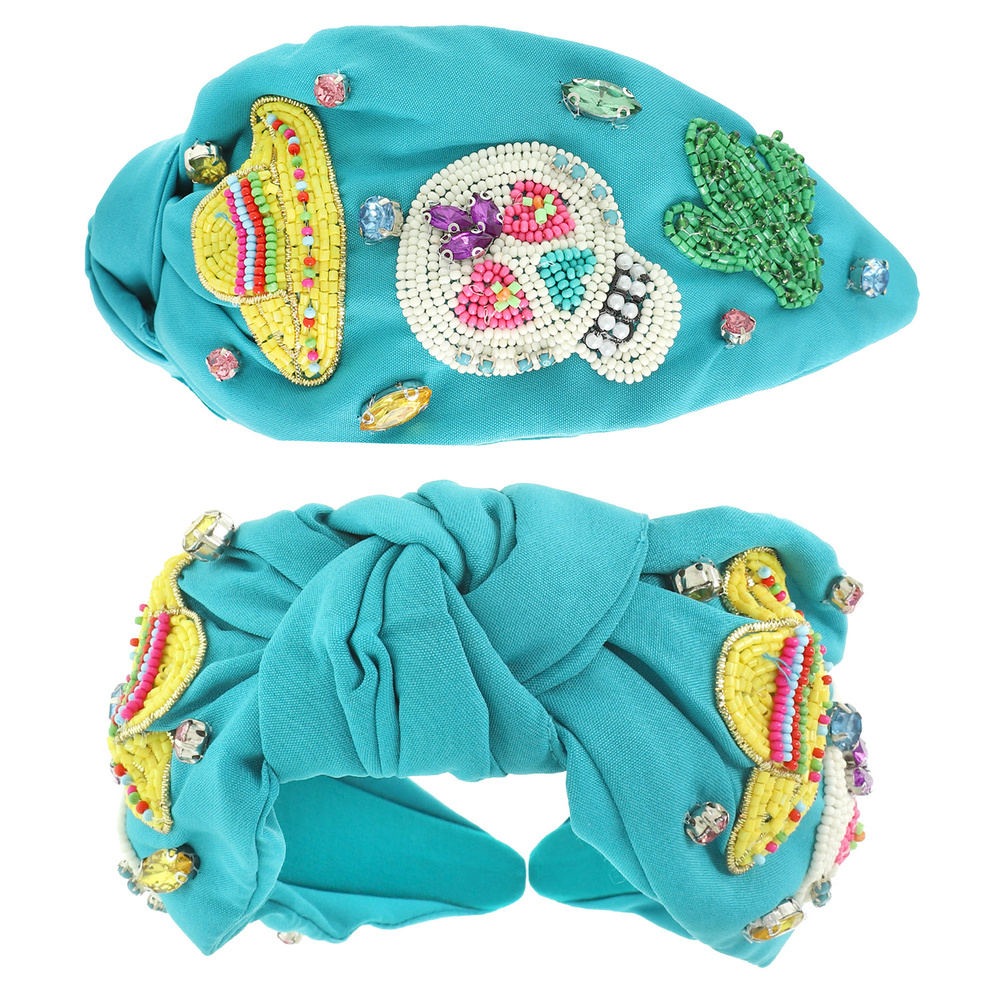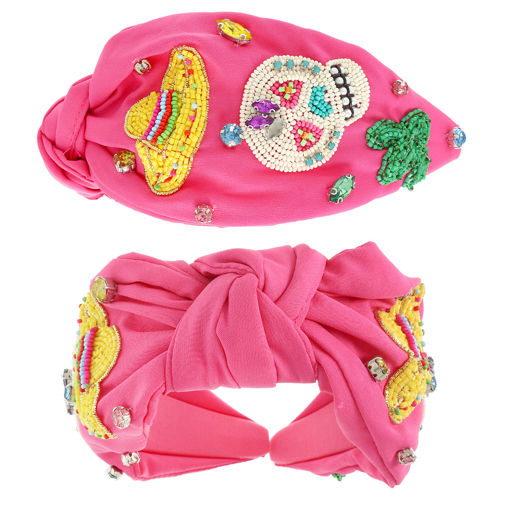 CRYSTAL BEAD EMBELLISHED DIA DE LOS MUERTOS SUGAR SKULL TOP KNOTTED HEADBAND