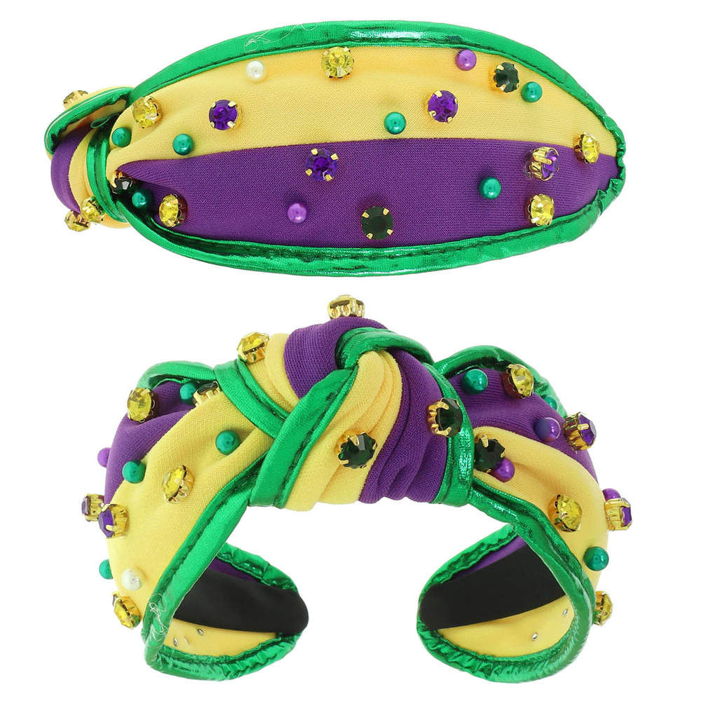 MARDI GRAS COLOR BLOCK HEADBAND WITH CRYSTALS AND BEADS