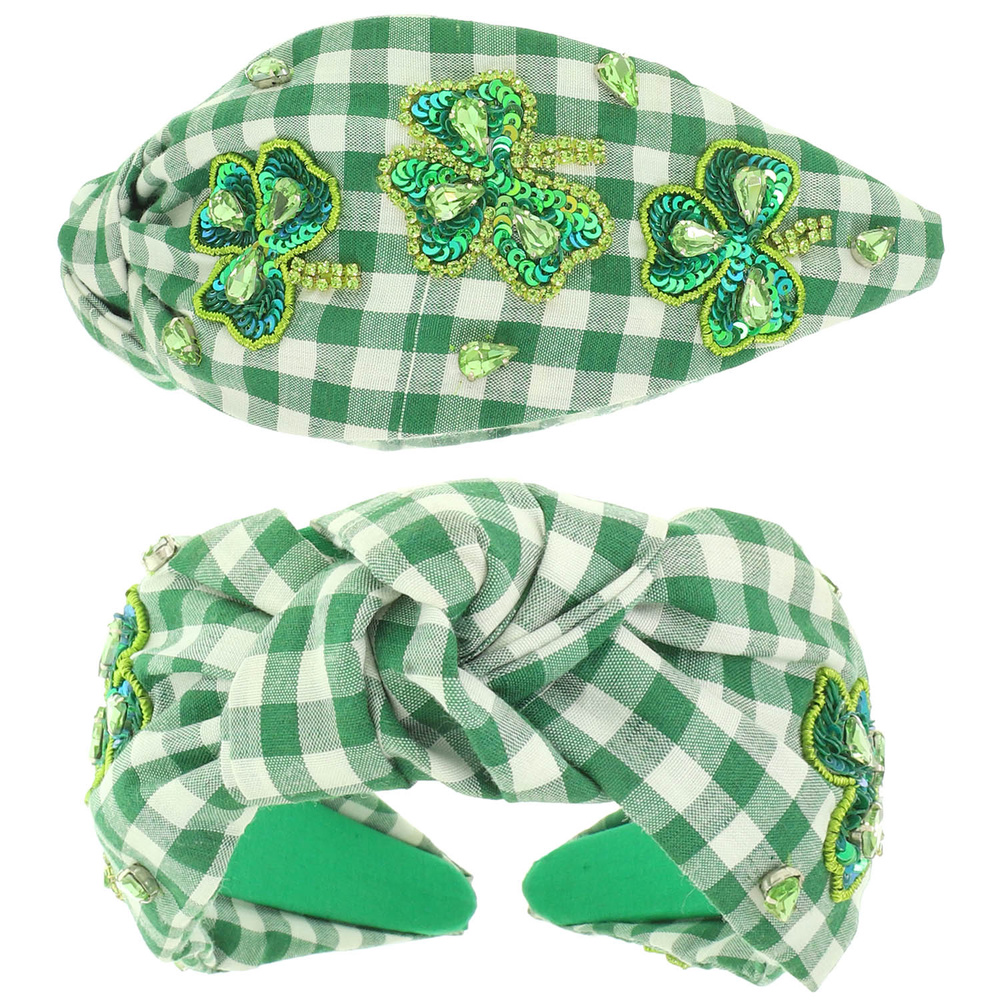 SHAMROCK TOP KNOTTED HEADBAND WITH SEQUINS AND CRYSTAL DETAILS