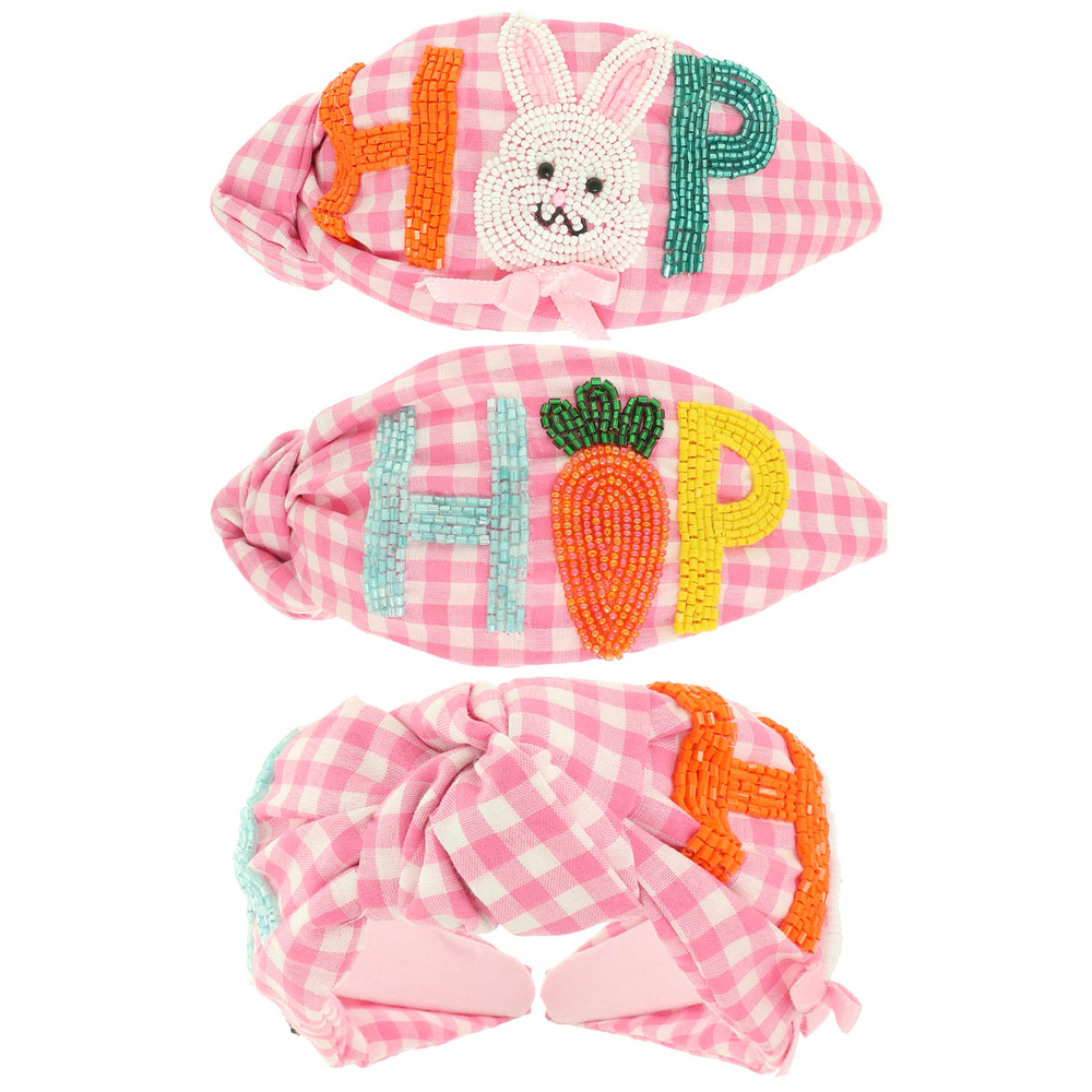 EASTER BUNNY "HOP" SEED BEADED GINGHAM TOP KNOTTED HEADBAND