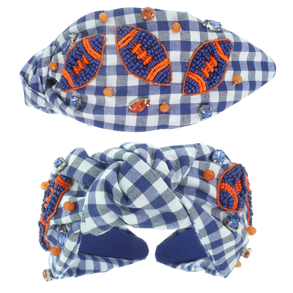 GAMEDAY FOOTBALL TOP KNOTTED HEADBAND WITH CRYSTAL AND PEARL ACCENTS