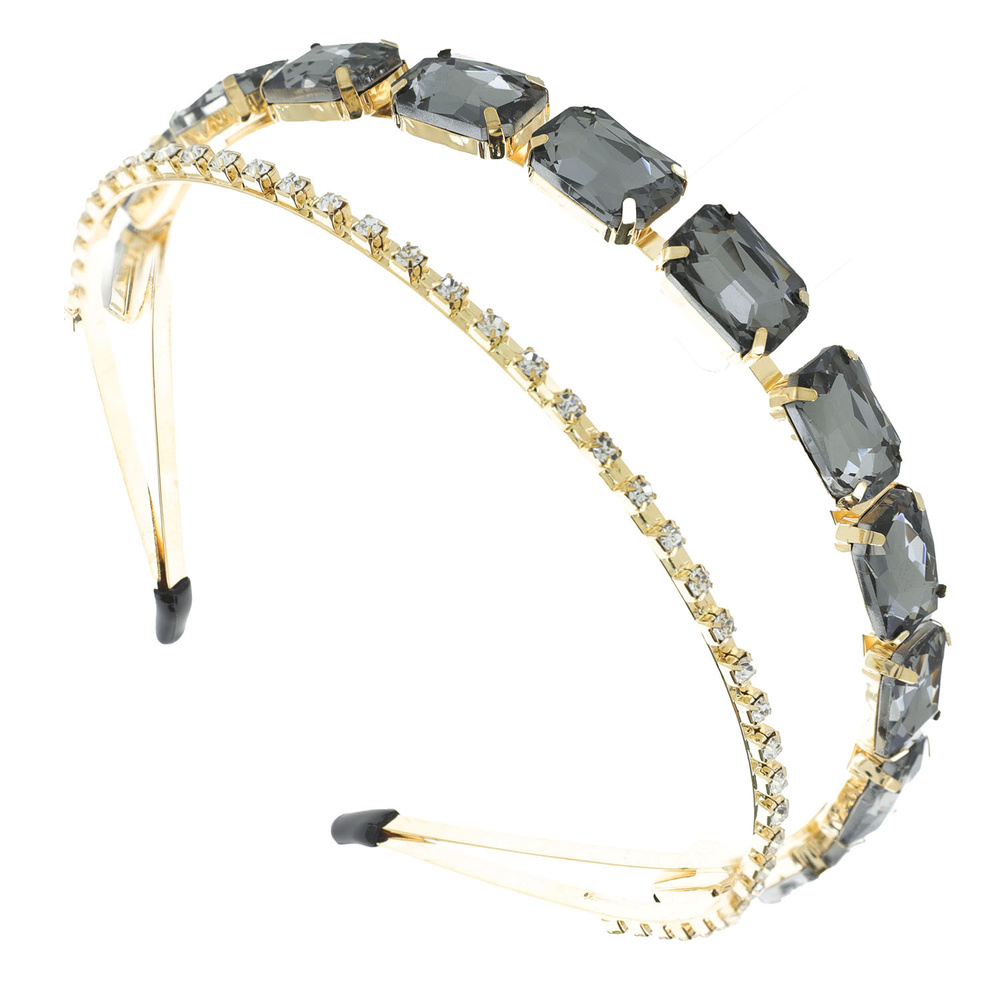 RHINESTONE AND SQUARE GEM STONE DOUBLE HEADBAND