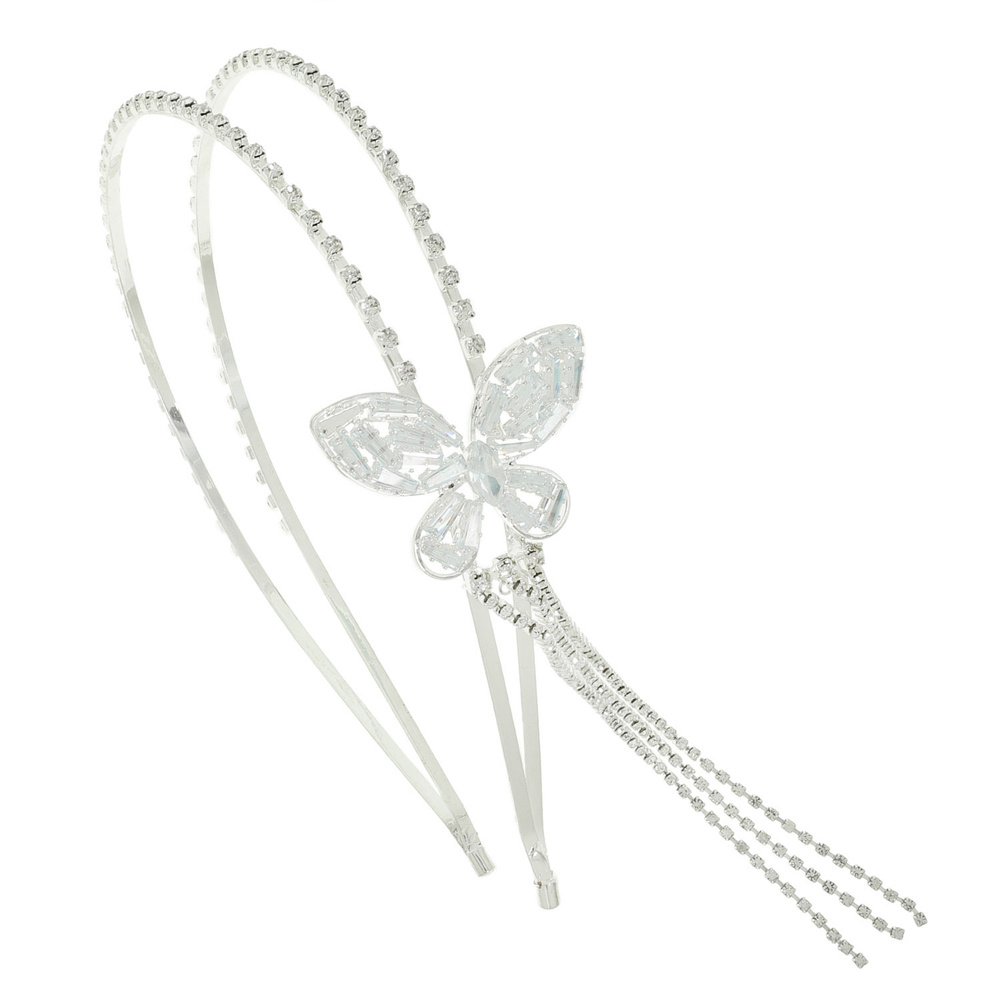 BUTTERFLY TASSEL WITH RHINESTONE PAVE DOUBLE LAYER METAL HEADBAND