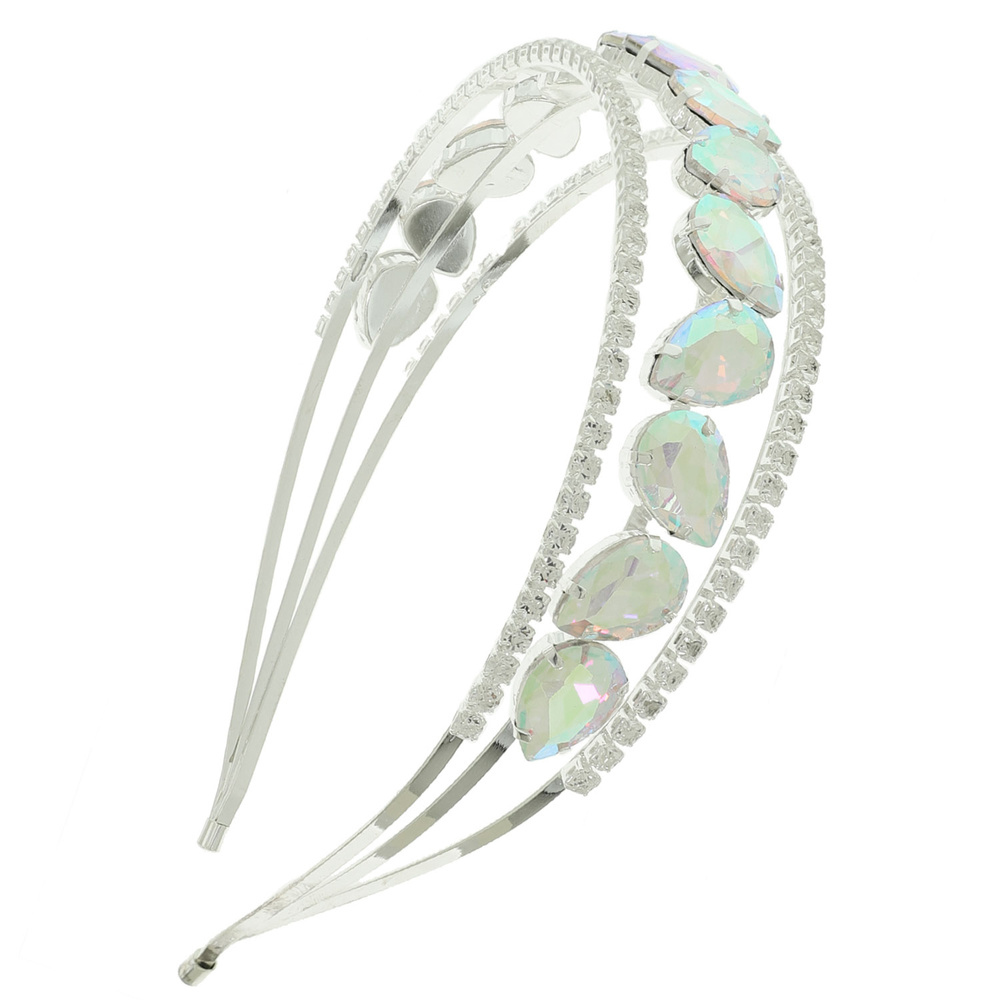 CRYSTAL RHINESTONE EMBELLISHED THREE LAYER METAL HEADBAND