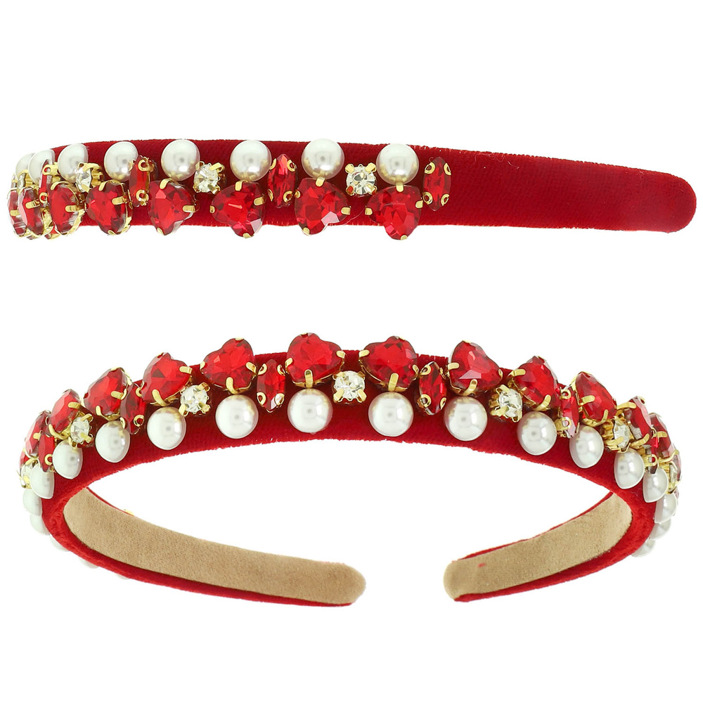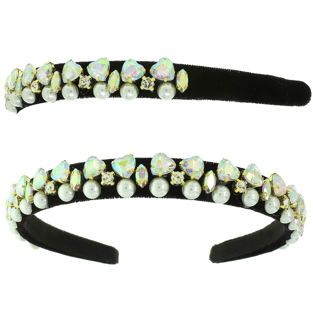 MULTI CUT CRYSTAL PEARL EMBELLISHED BAROQUE SLIM HEADBAND