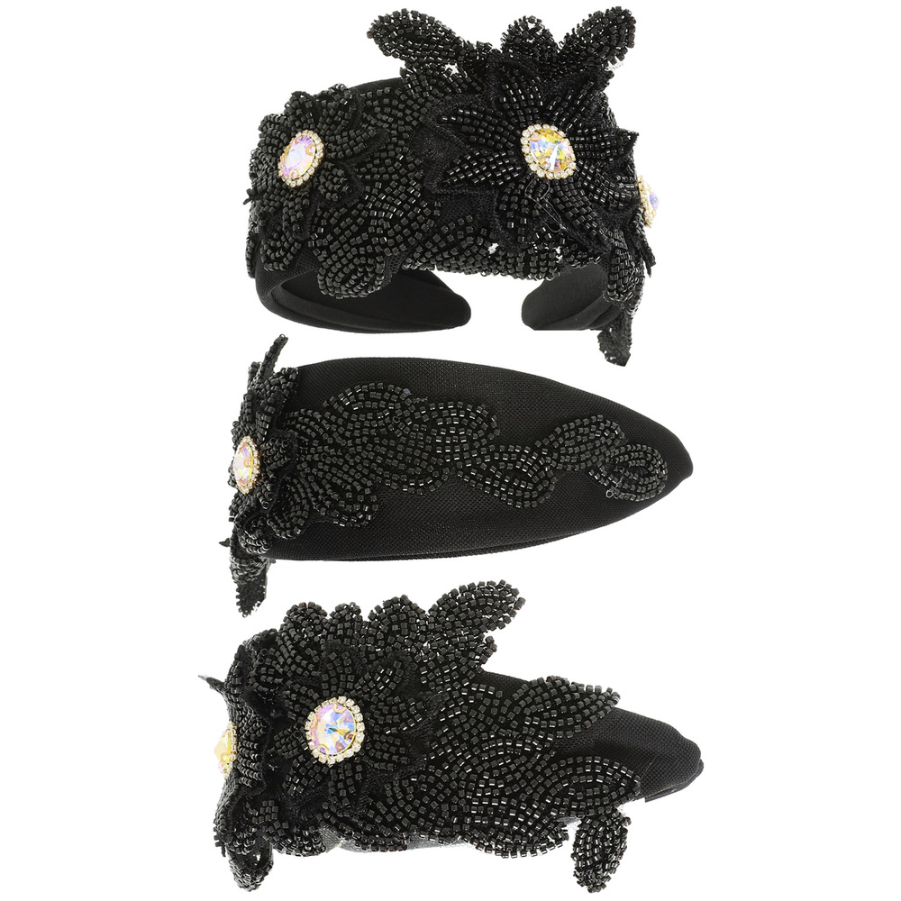 CRYSTAL RHINESTONE BEAD EMBELLISHED FLOWER HEADBAND