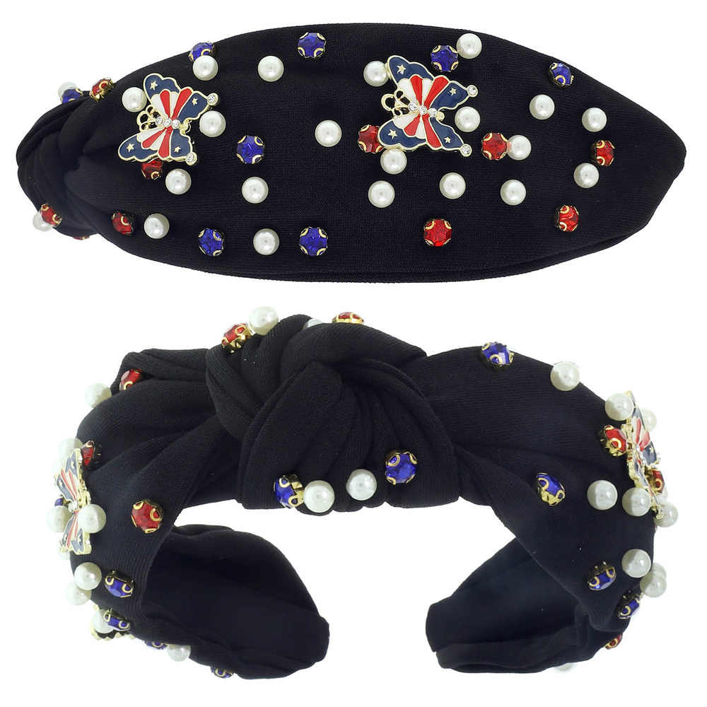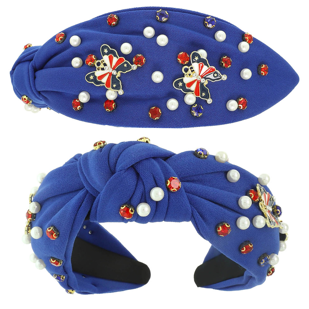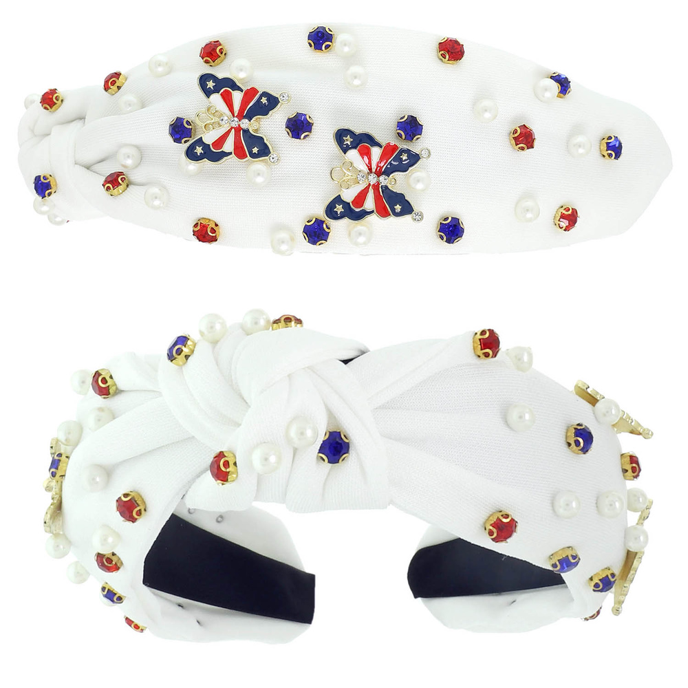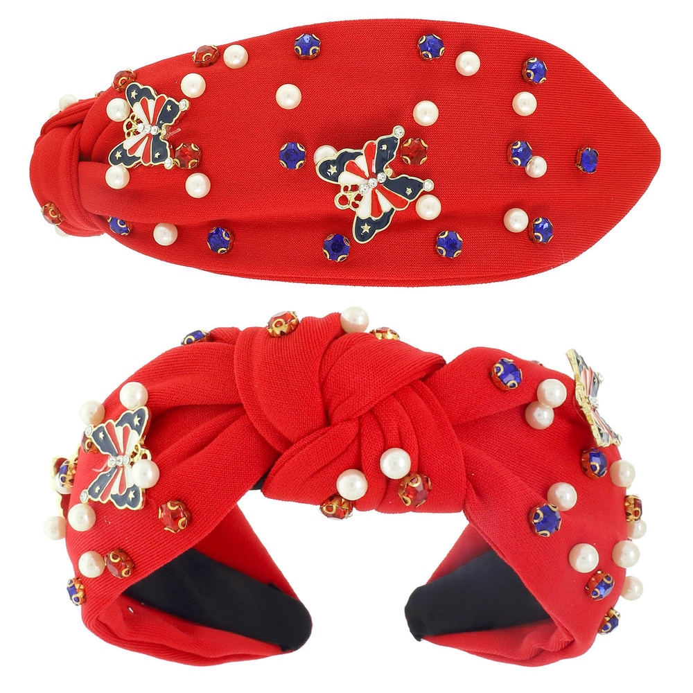 AMERICAN FLAG THEME CHARM CRYSTAL PEARL EMBELLISHED TOP KNOTTED HEADBAND
