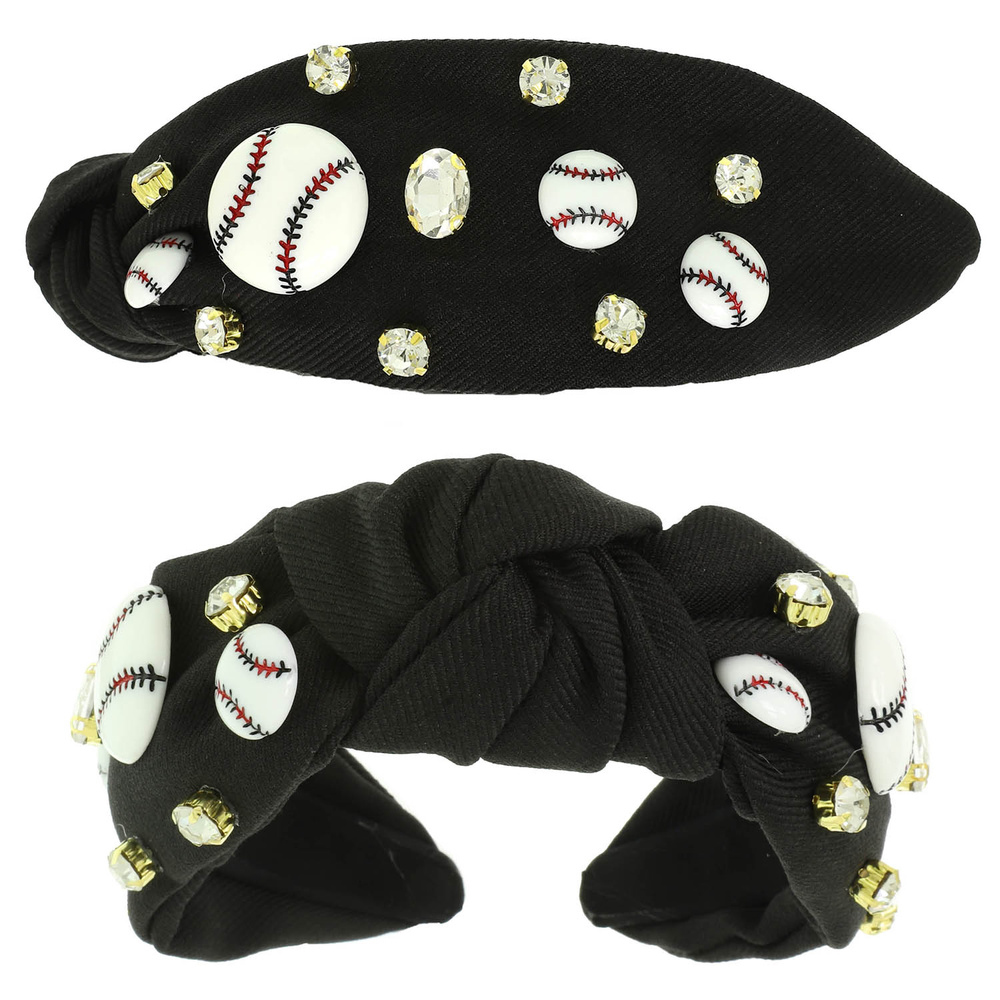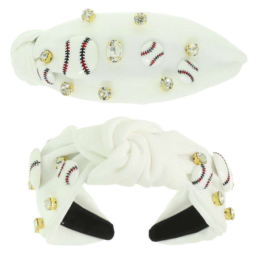 BASEBALL THEME TOP KNOTTED HEADBAND WITH CHARMS AND CRYSTALS