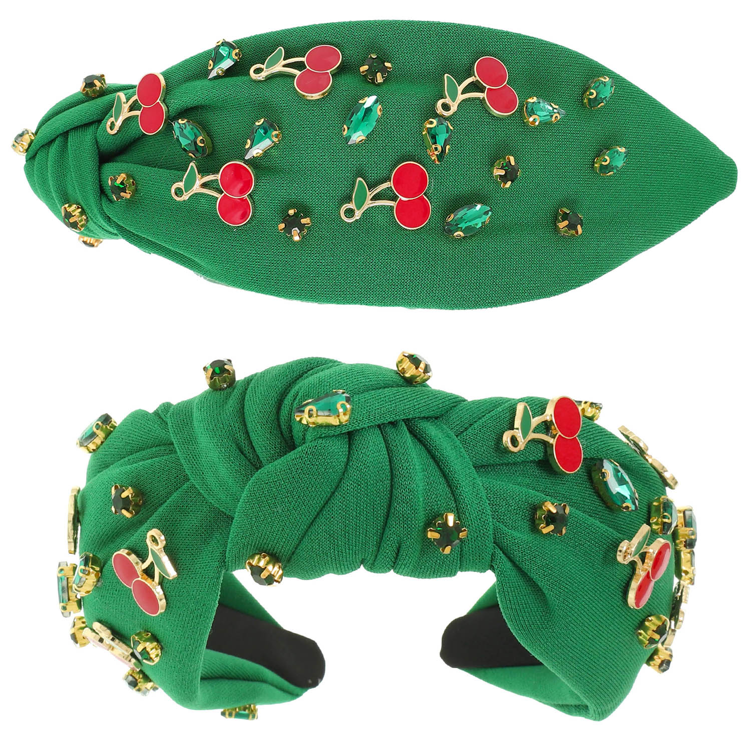 CHERRY ENAMEL CHARM CRYSTAL EMBELLISHED TOP KNOTTED HEADBAND