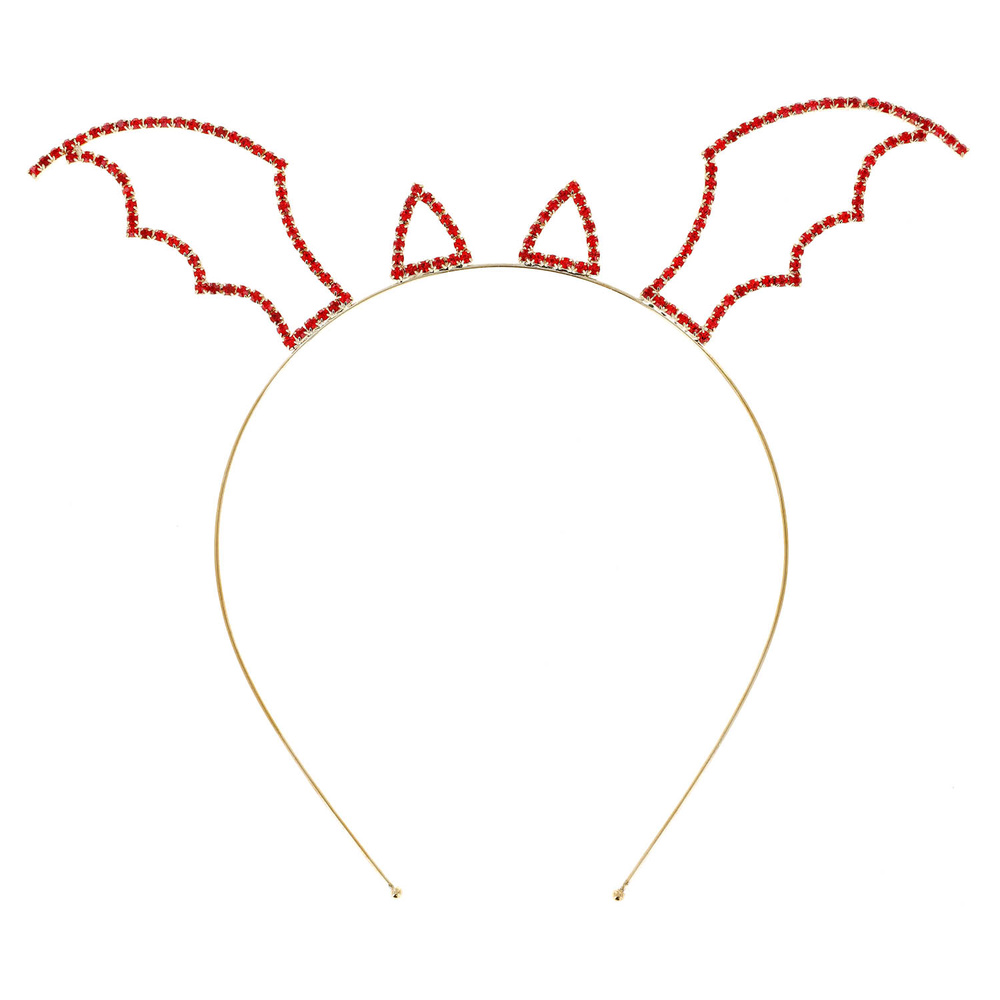 HALLOWEEN RED RHINESTONE DEVIL BAT EAR AND WIG HEADBAND