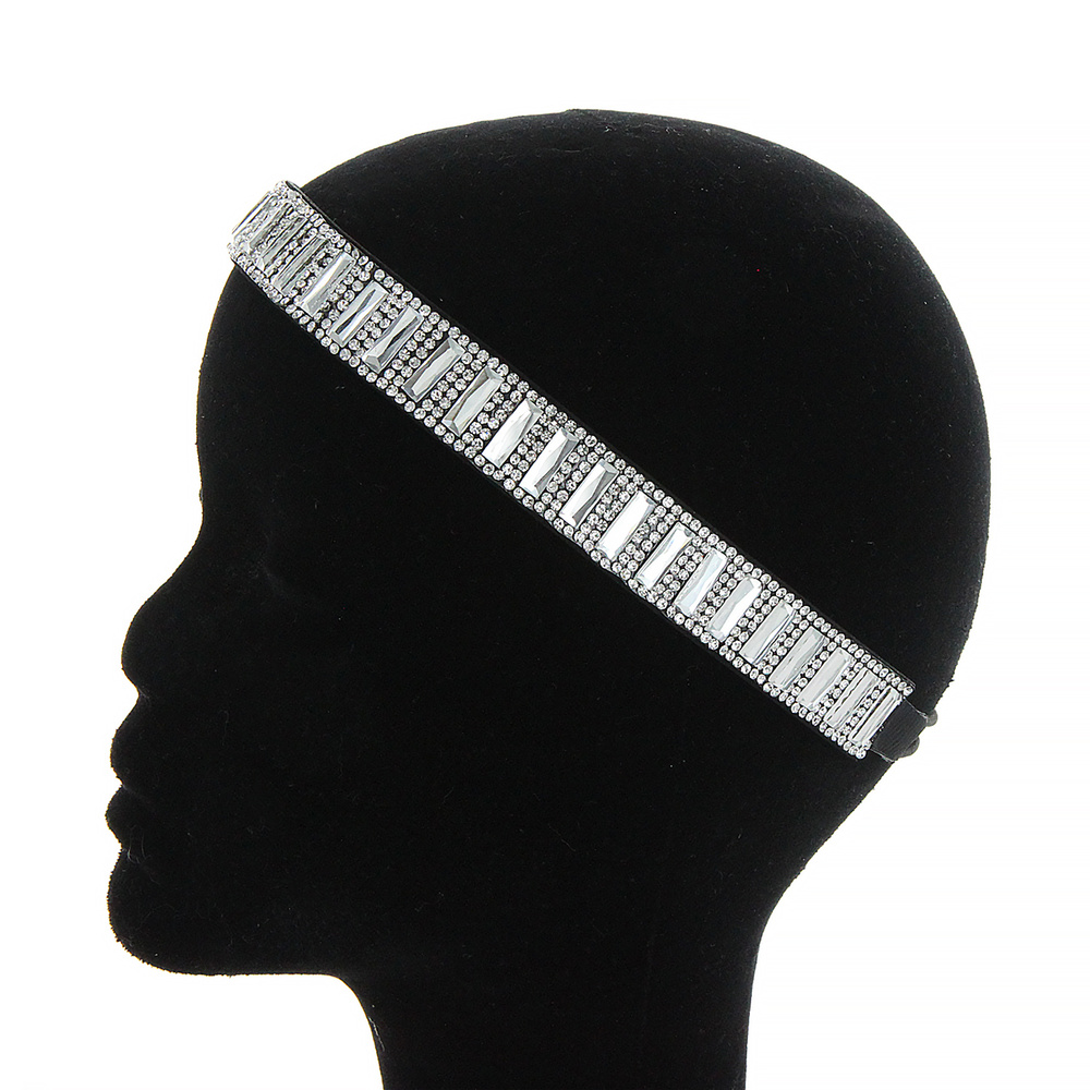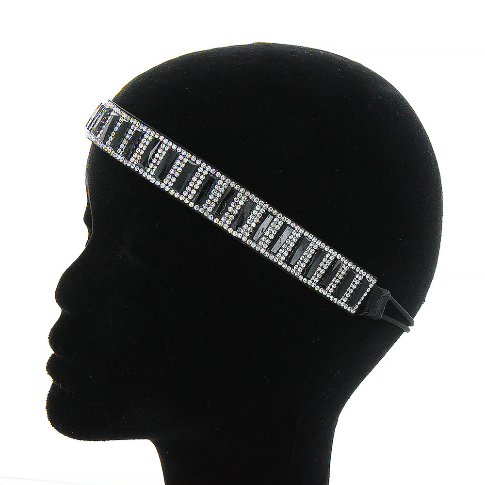 Black Pretty Detailed Rhinestone Headband W/ Crystals