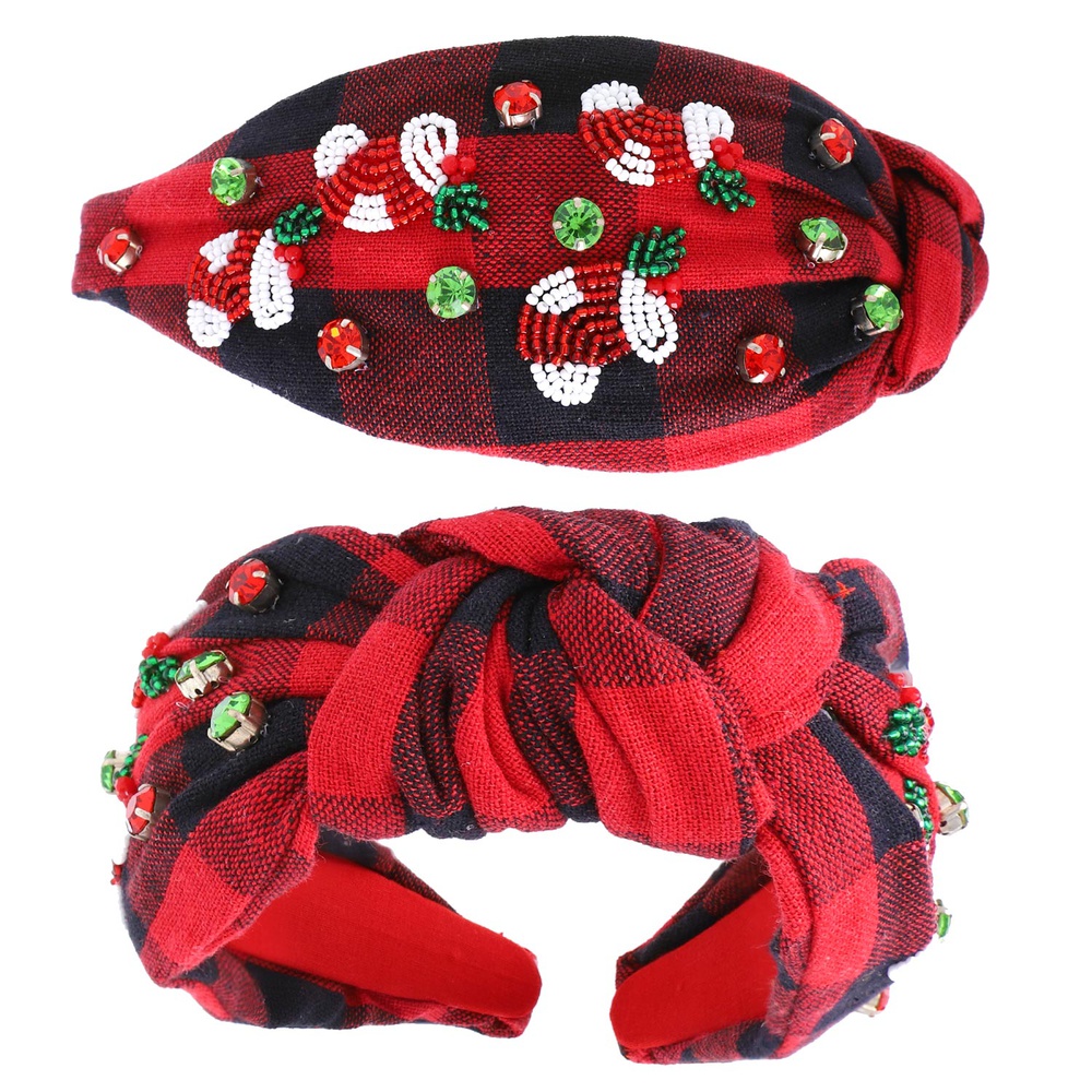 MISTLETOE CRYSTAL RHINESTONE BEADED TOP KNOT GINGHAM PATTERN CHRISTMAS HANDMADE HEADBAND