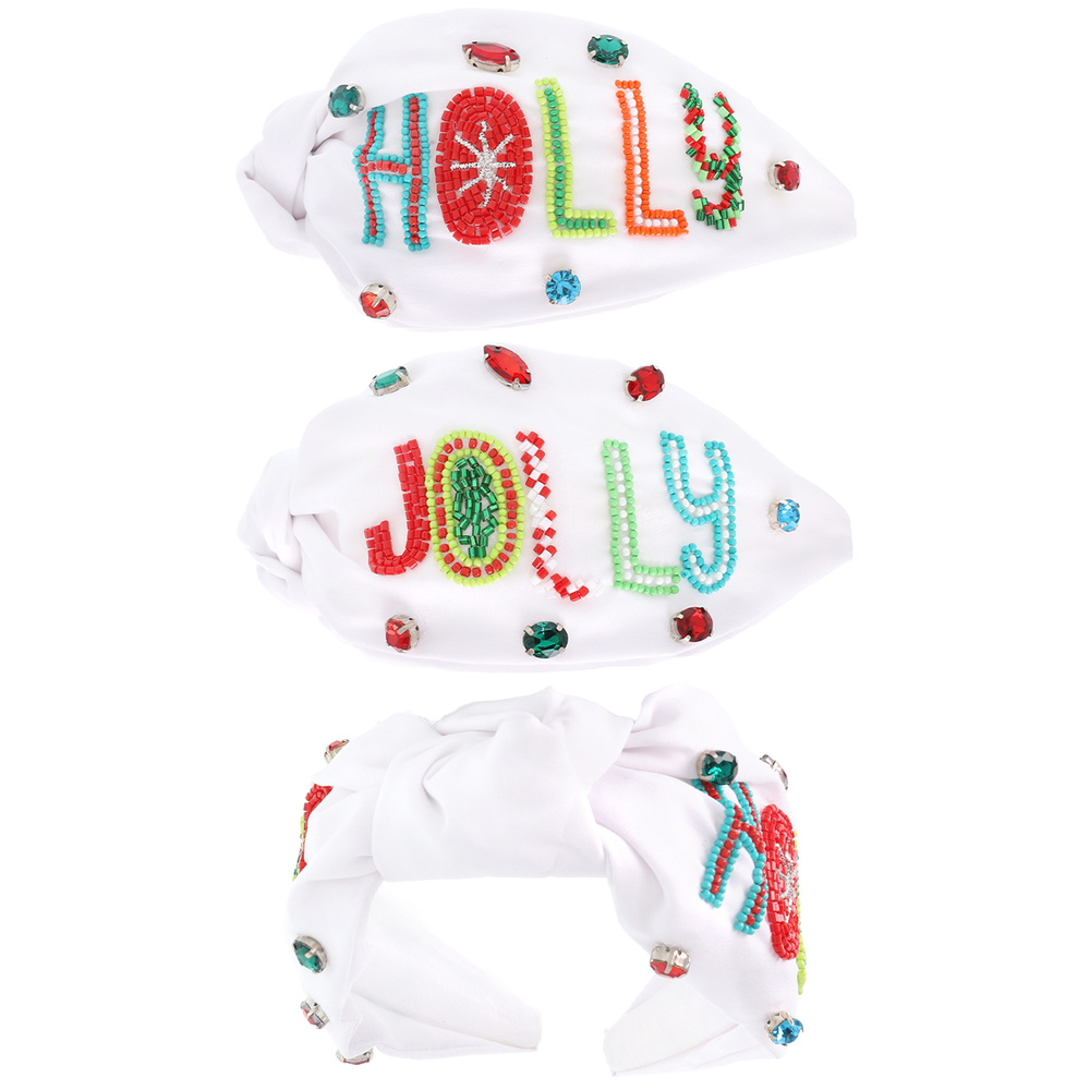 "HOLLY JOLLY" CRYSTAL RHINESTONE STUDDED CHRISTMAS MULTICOLOR TOP KNOT HANDMADE HEADBAND