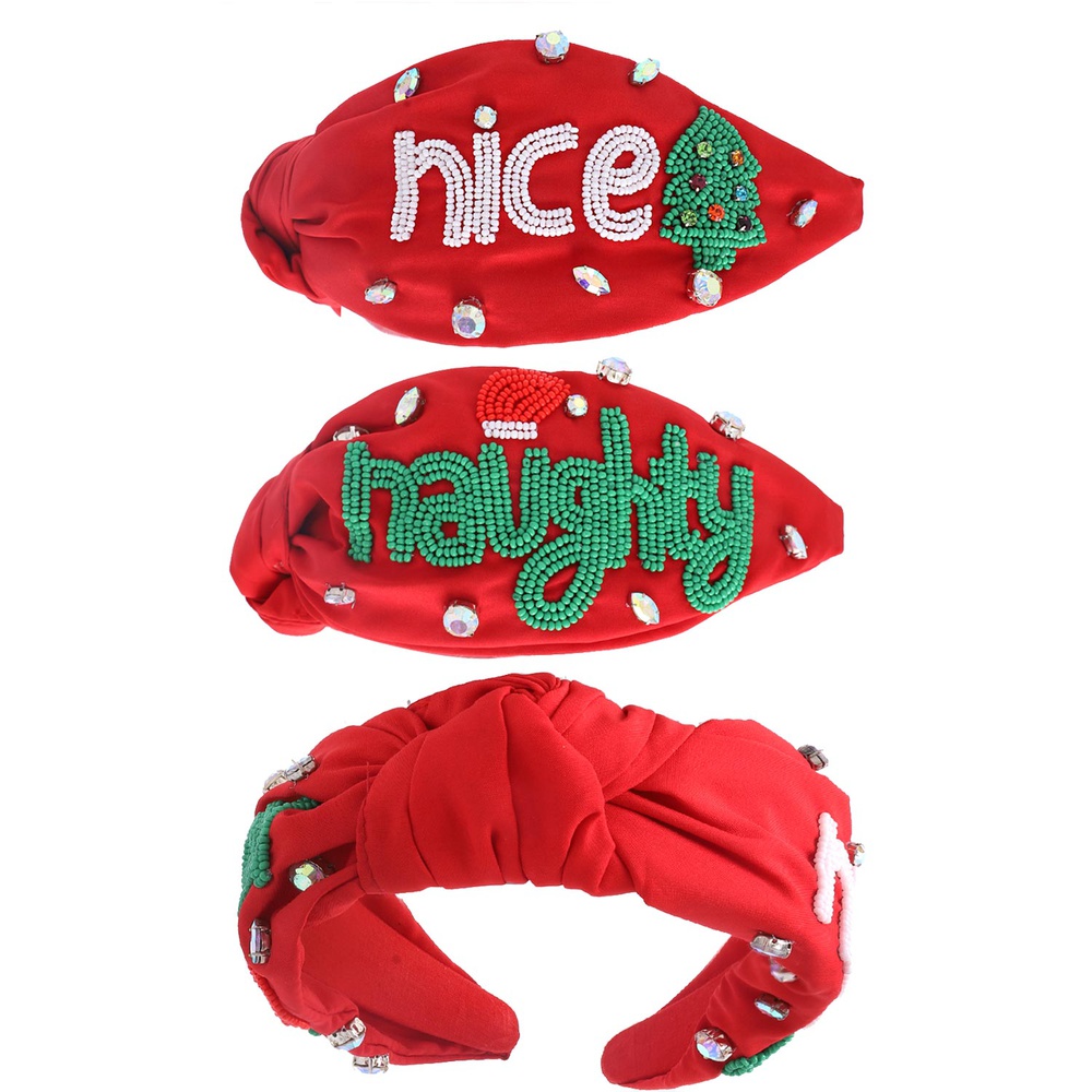 Jeweled Naughty Nice Christmas Knotted Headband