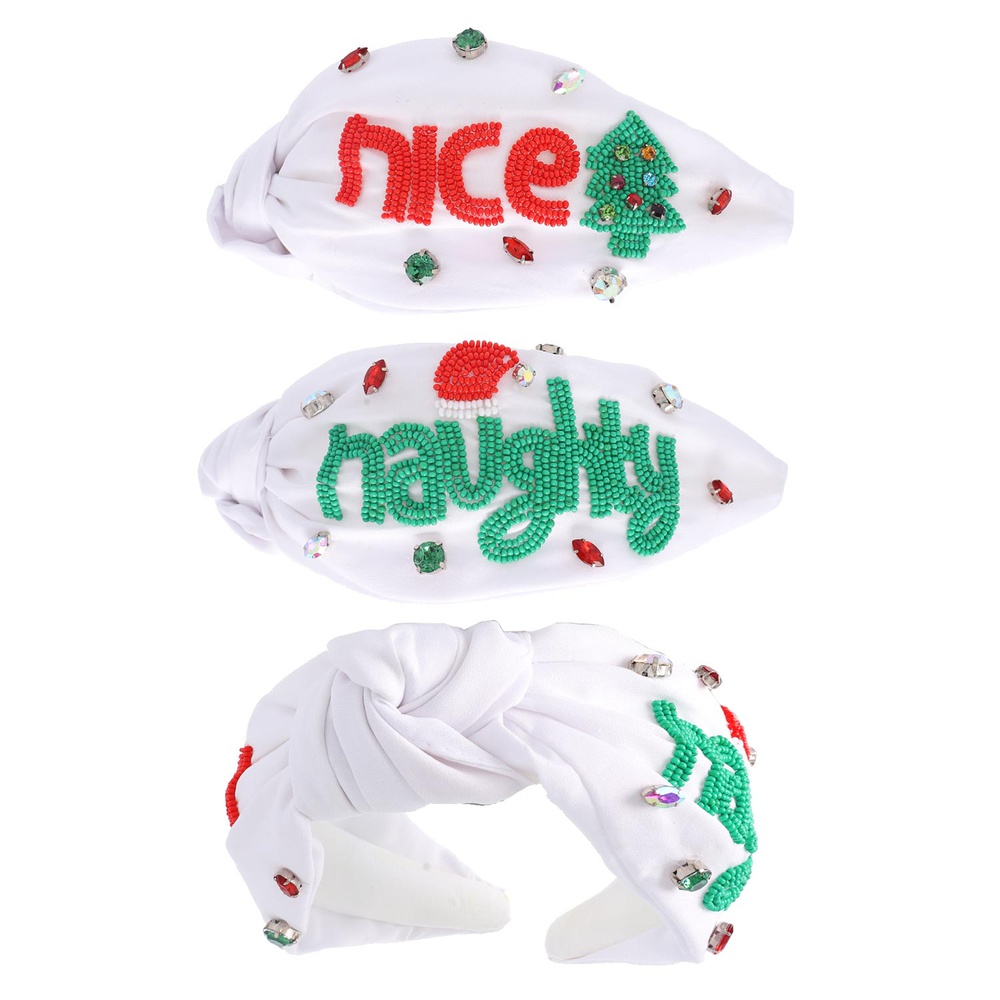 "NAUGHTY NICE" CRYSTAL RHINESTONE STUDDED CHRISTMAS TREE TOP KNOT HANDMADE HEADBAND