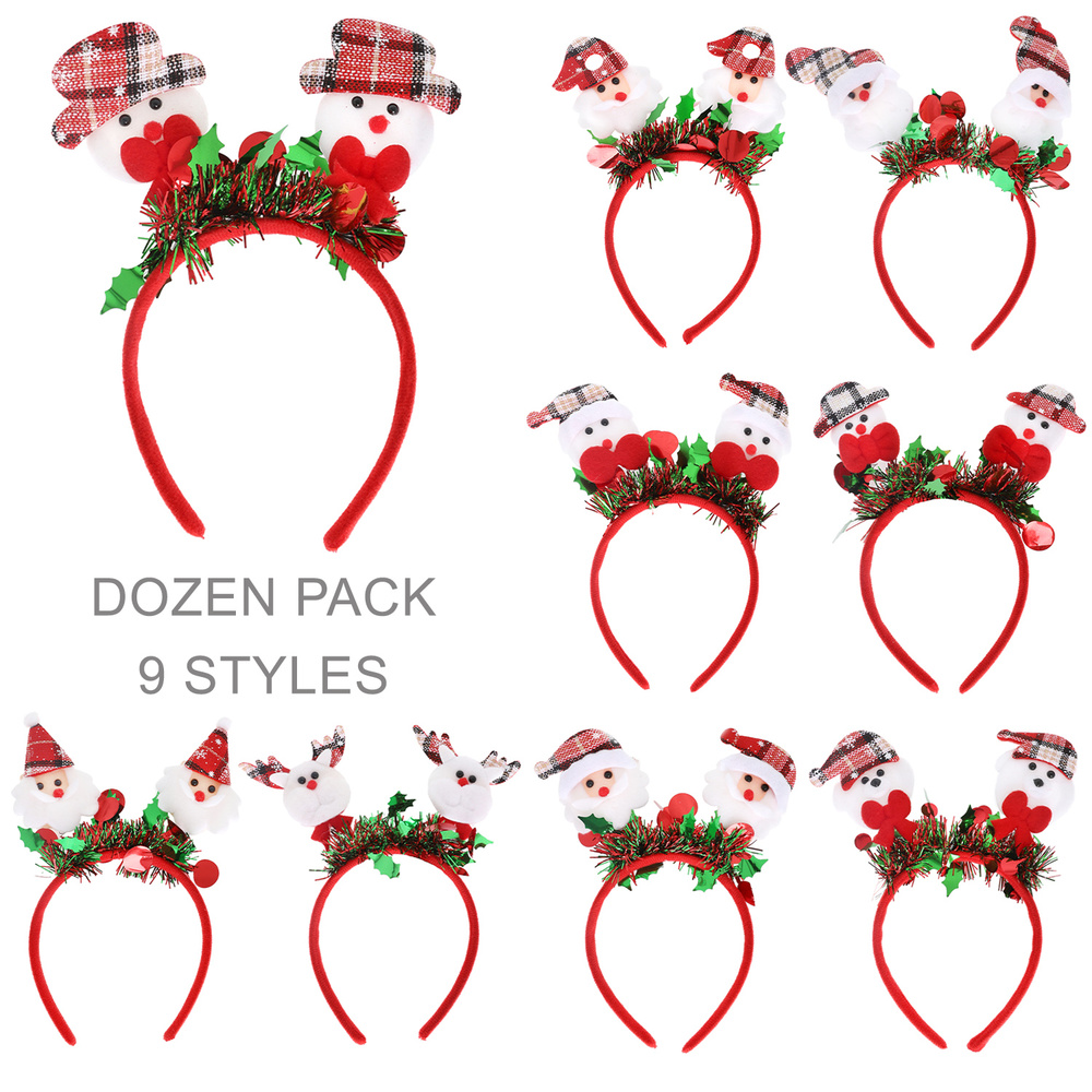 12 PACK - 9 STYLES TARTAN CHRISTMAS CHARACTERS TINSEL MISTLETOE PARTY FELT HEADBAND