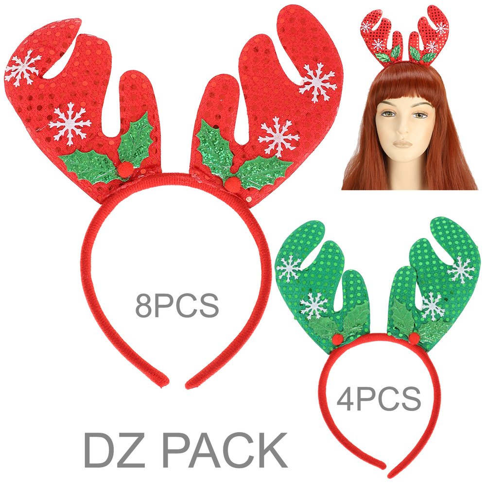 12 PACK - 2 STYLES - ASSORTED CHRISTMAS REINDEER HEADBAND