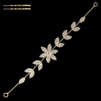 • ROSE RHINESTONE HAIR VINE W/LEAFS ON SIDES