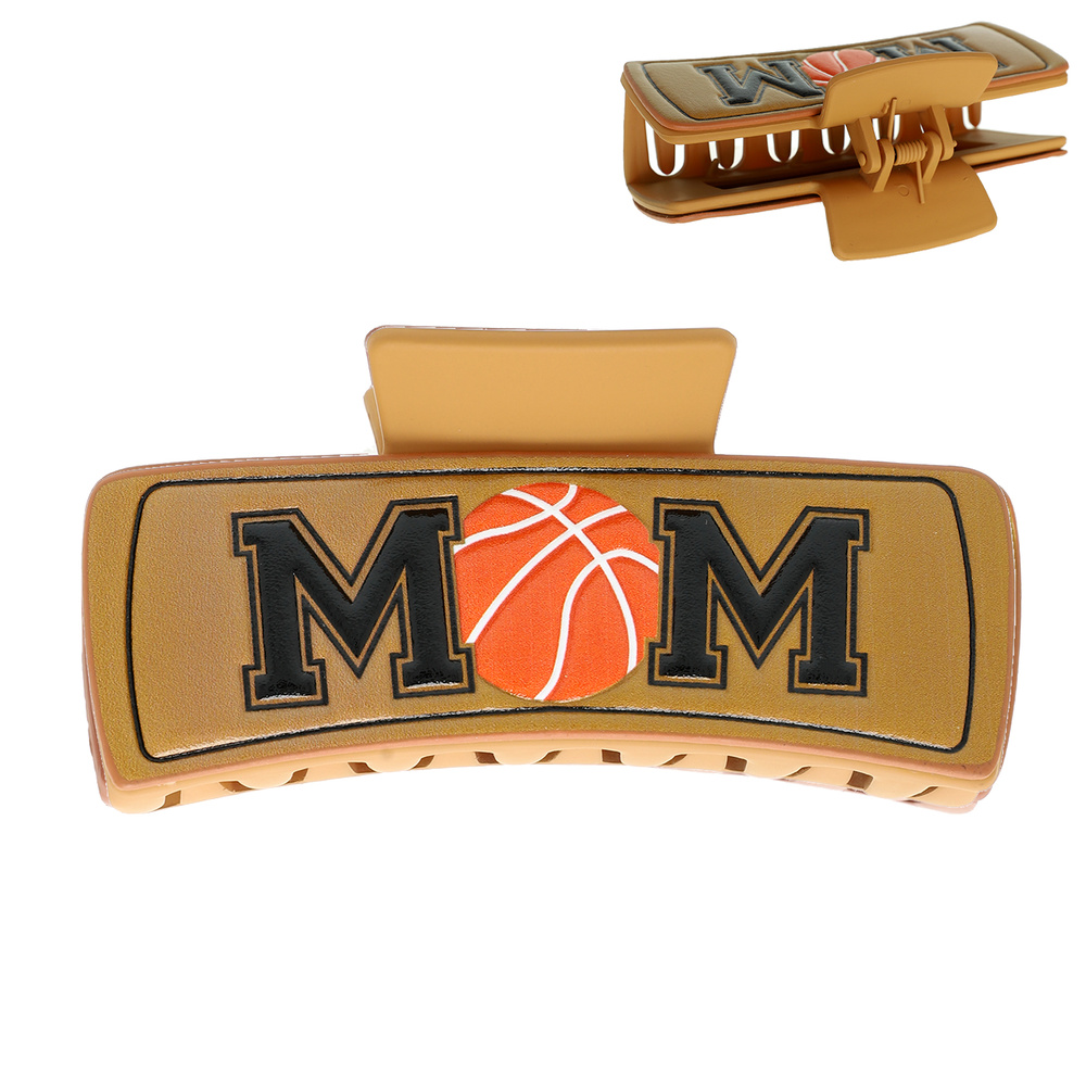 BASKETBALL SPORTS "MOM" EMBOSSED LEATHER HAIR CLAW CLIP