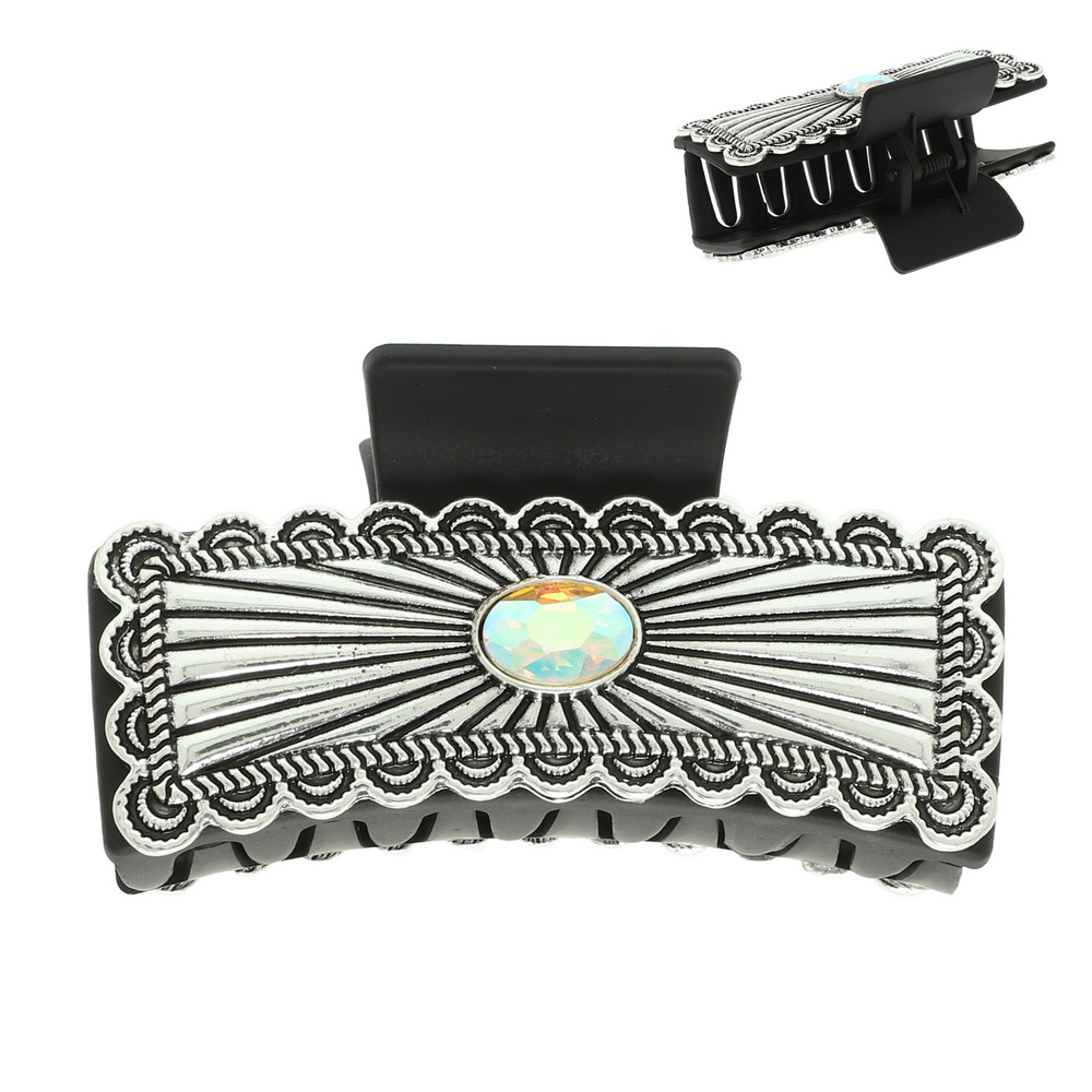 CRYSTAL SUN BEAM MOTIF WITH SCALLOPED EDGES HAIR CLAW CLIP