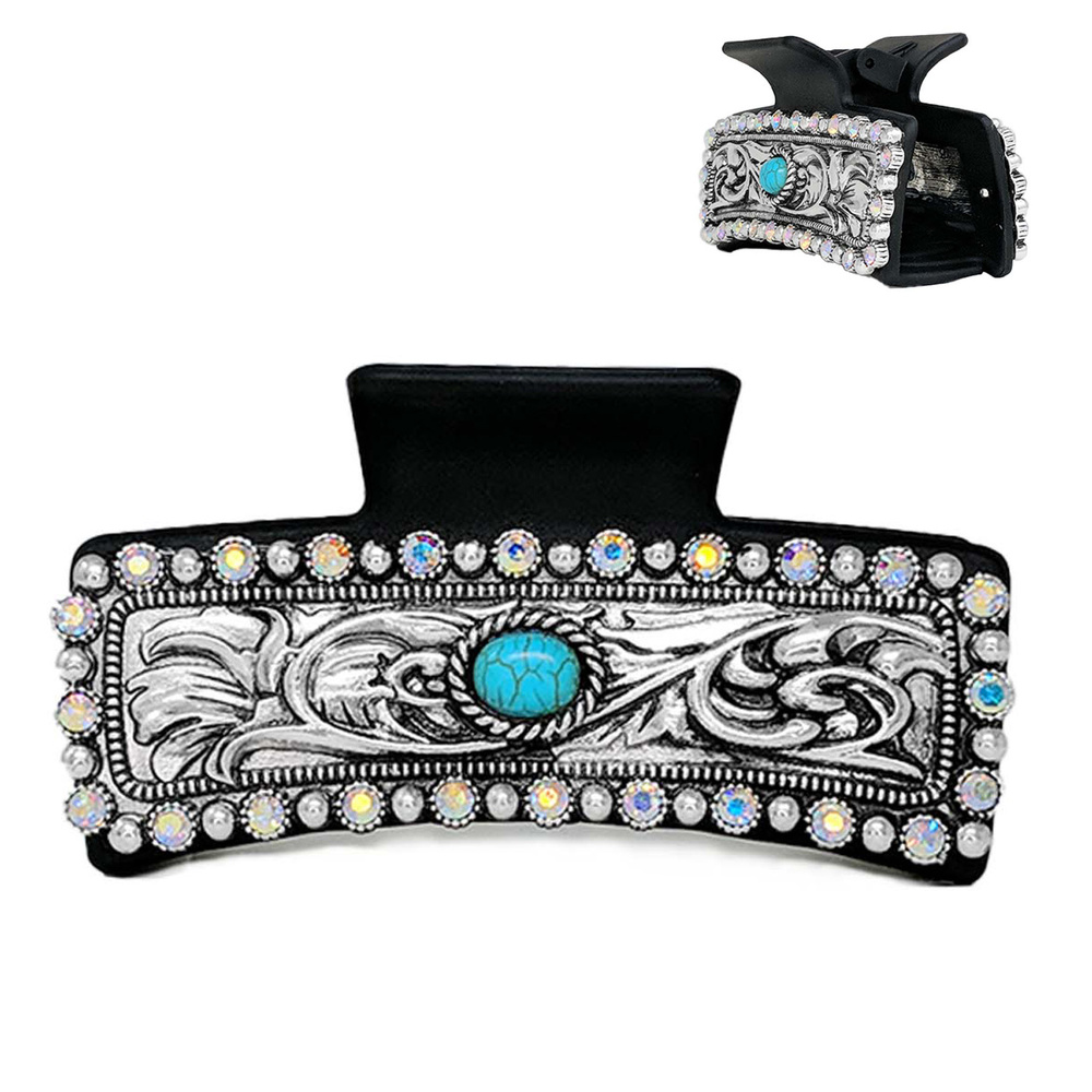 WESTERN CRYSTAL TURQUOISE EMBELLISHED FILIGREE METAL HAIR CLAW CLIP