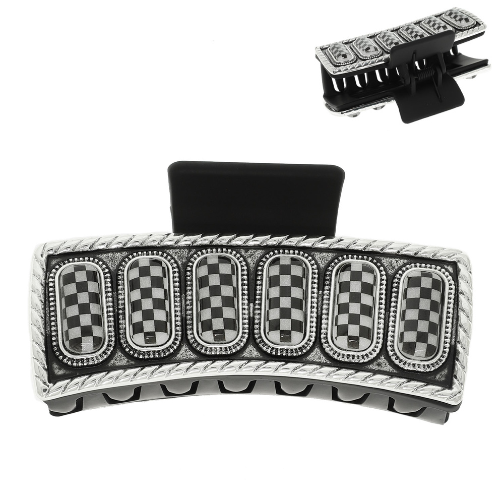 WESTERN CHECKER FLAG PATTERN SILVER-TONE METAL HAIR CLAW CLIP