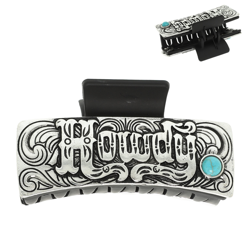 TURQUOISE EMBELLISHED "HOWDY" SCROLLED METAL HAIR CLAW CLIP